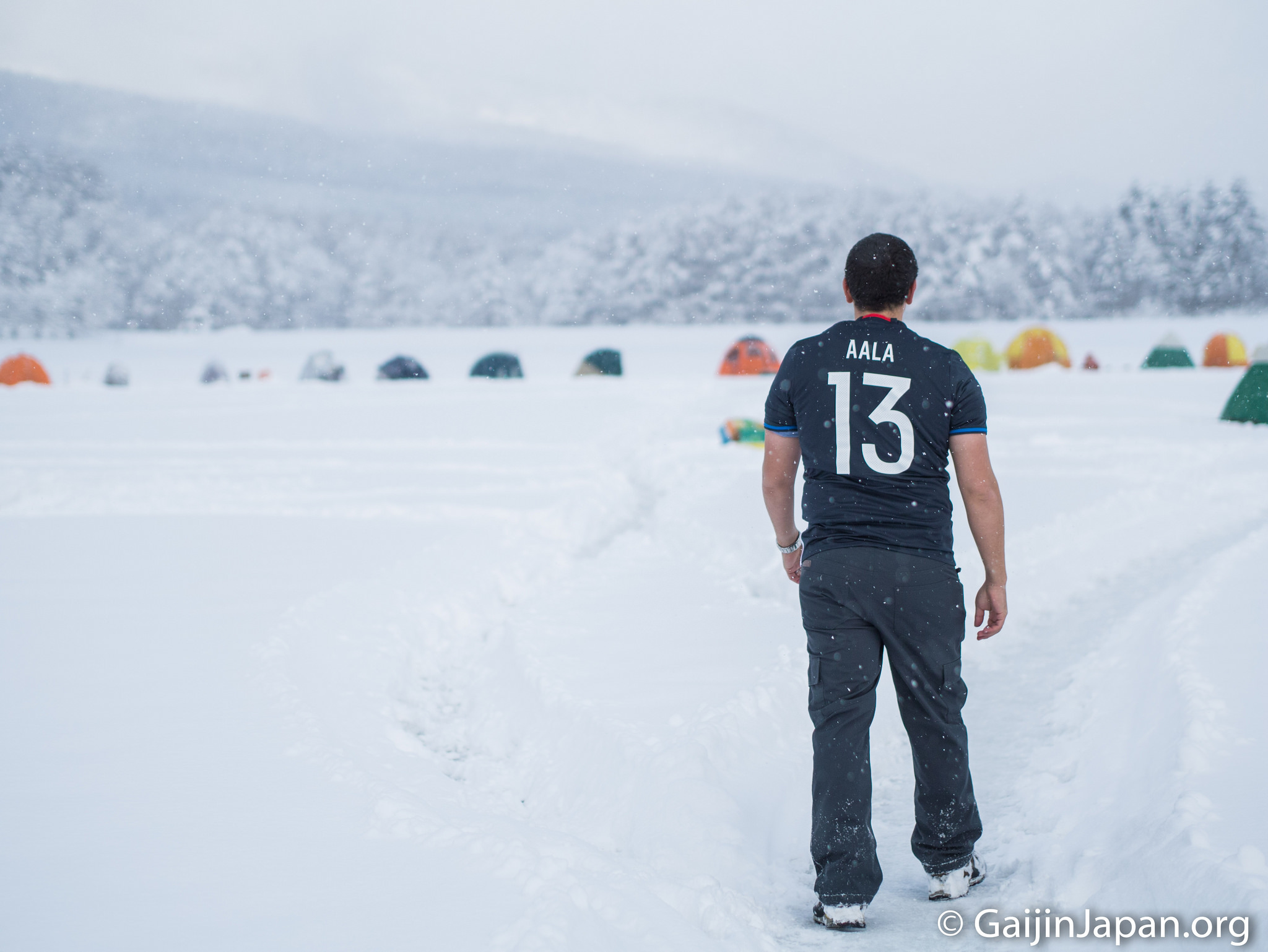 Entre deux sessions de glisse, il nous est aussi arrivé de manger et parfois même de mettre la main à la pâte pour préparer notre repas ! La meilleure journée pour illustrer ces propos reste celle du mardi où nous sommes tout d’abord allé pêcher des poissons « Wakasagi » dans un lac gelé (sacré expérience que de pêcher depuis un trou dans la glace) qui ont été frit par la suite. J’ai d’ailleurs pêché le plus grand nombre de poissons (12) de tout le groupe.