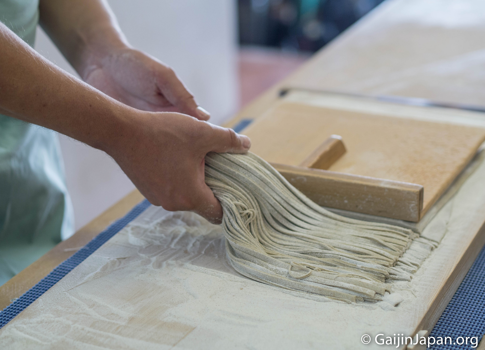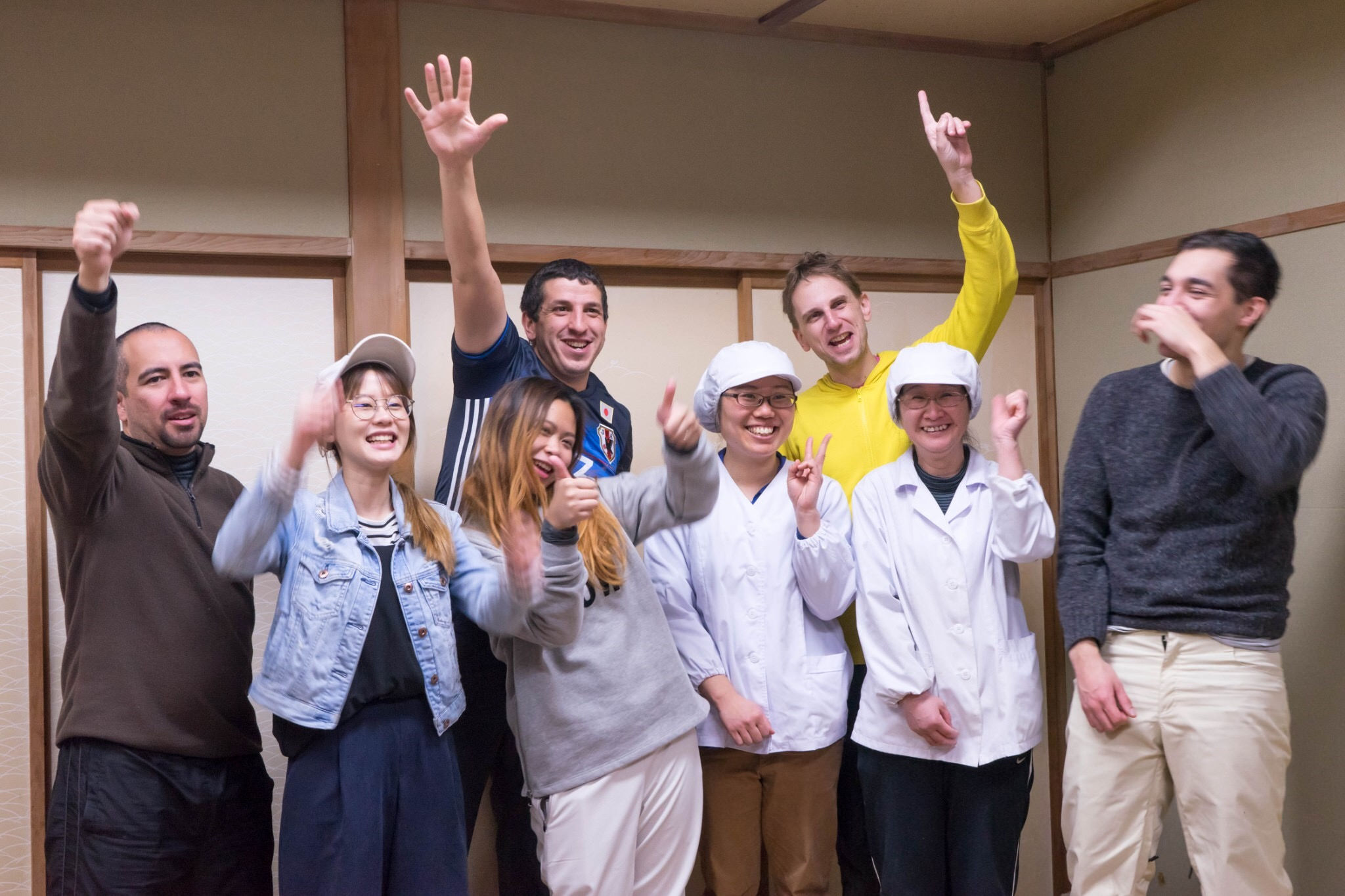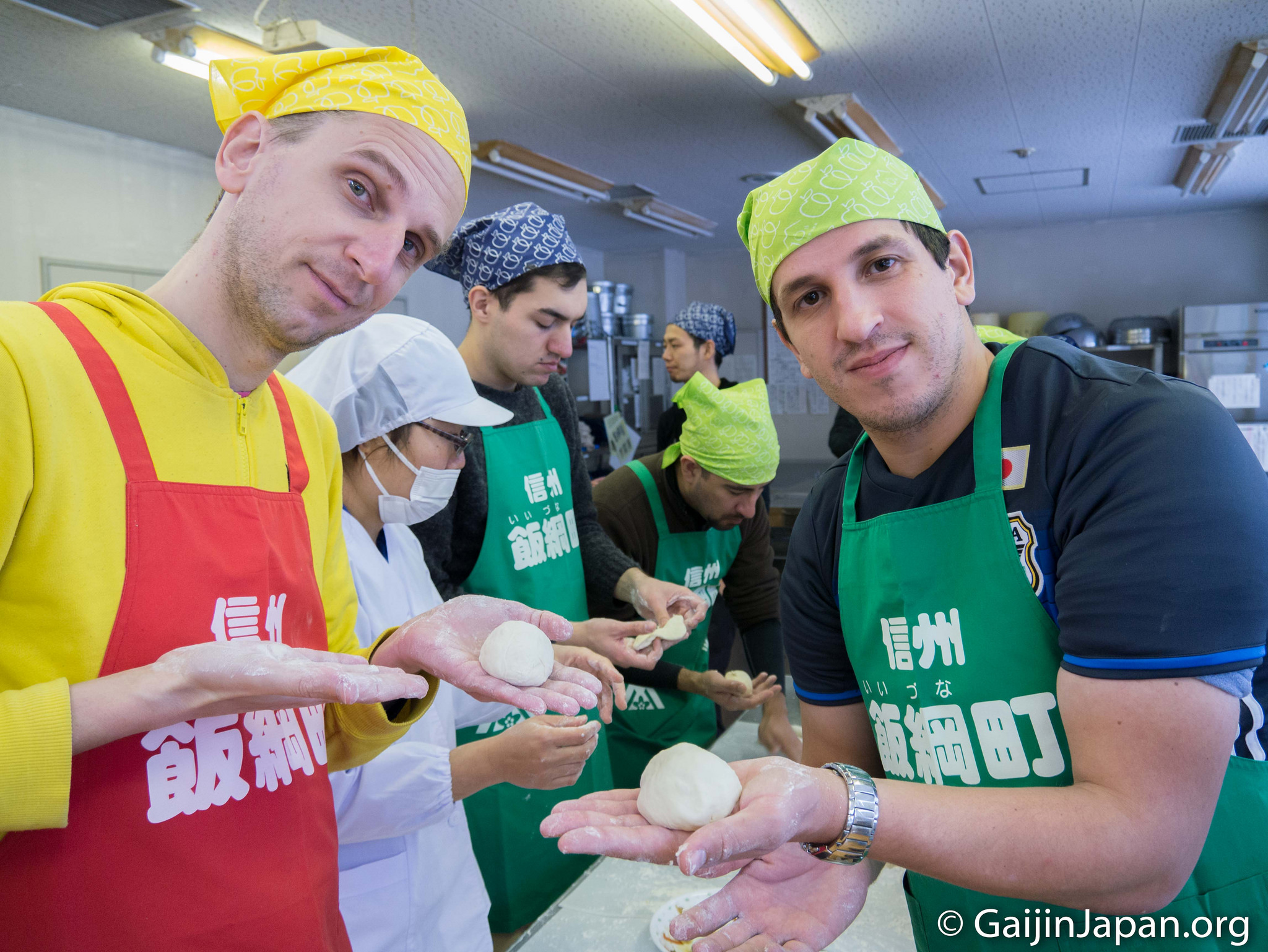 Ensuite, nous avons eu l’occasion d’apprendre à faire des Soba à partir de farine de sarasin, accompagné d’un maitre en la matière qui nous guidait à chaque étape. Enfin, pour terminer la journée nous avons appris à faire des Oyaki à la façon locale (fourrés à l’azuki – pâte de haricots rouges sucrée – et aux légumes).