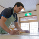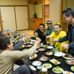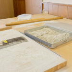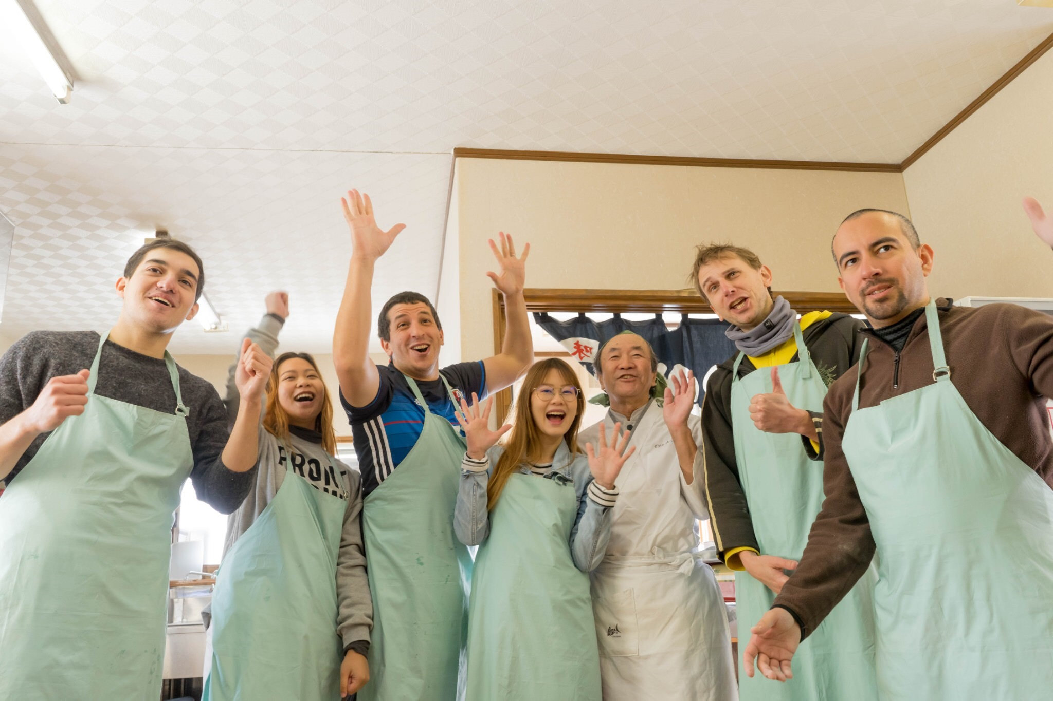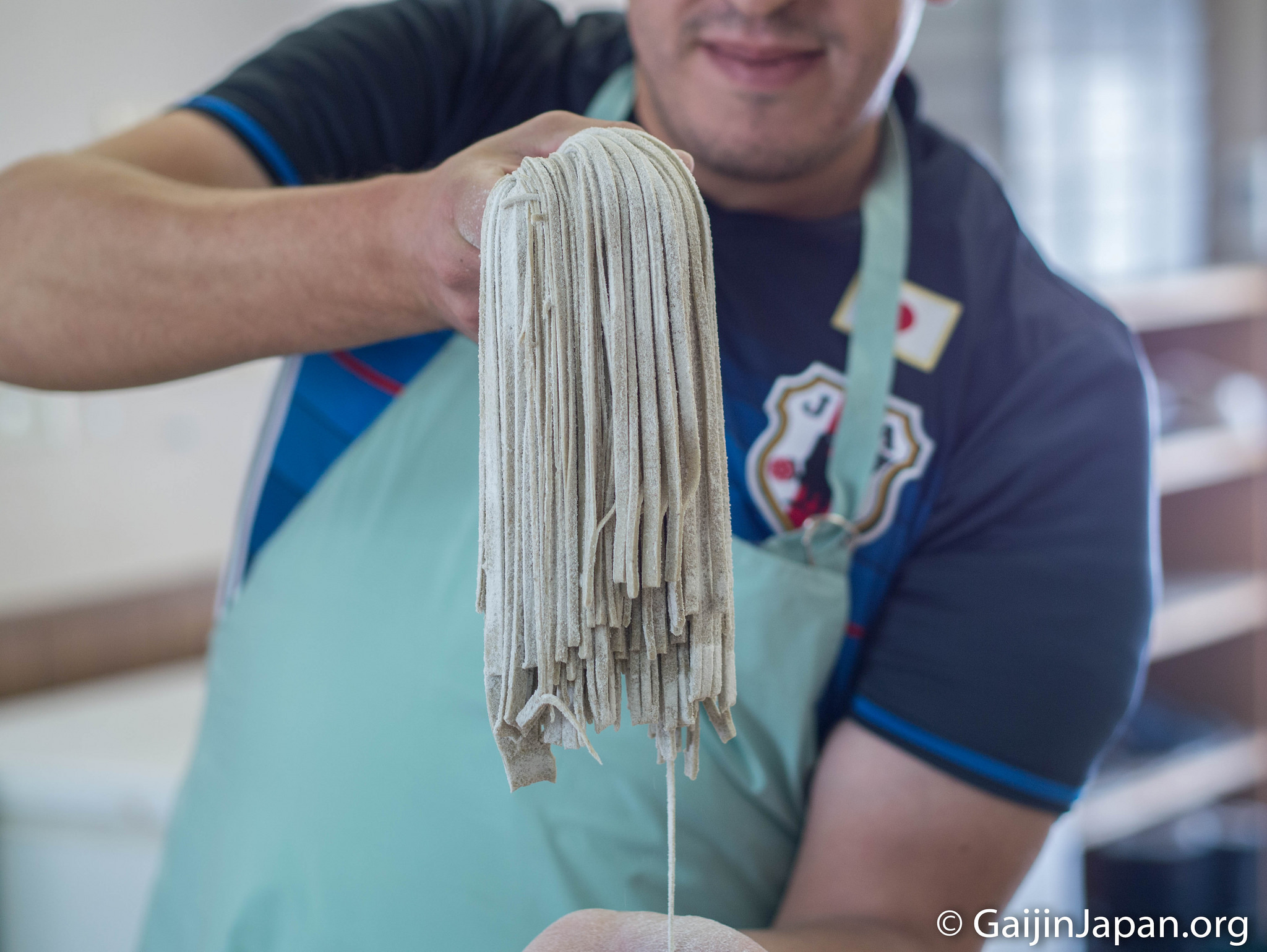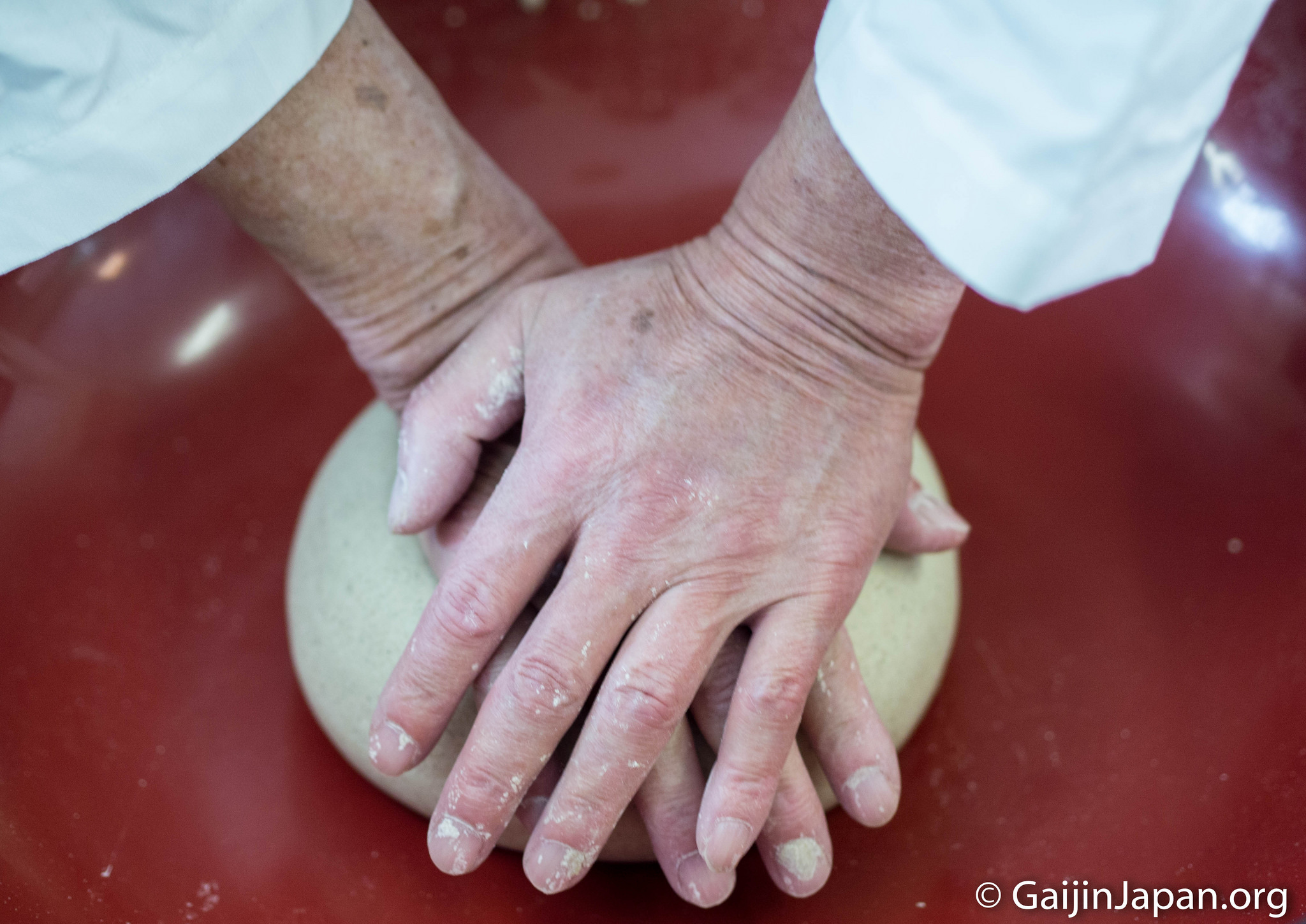 Ensuite, nous avons eu l’occasion d’apprendre à faire des Soba à partir de farine de sarasin, accompagné d’un maitre en la matière qui nous guidait à chaque étape. Enfin, pour terminer la journée nous avons appris à faire des Oyaki à la façon locale (fourrés à l’azuki – pâte de haricots rouges sucrée – et aux légumes).