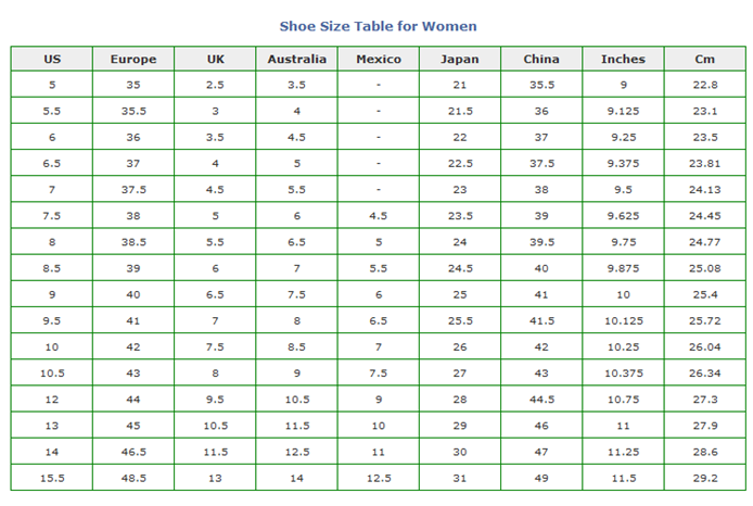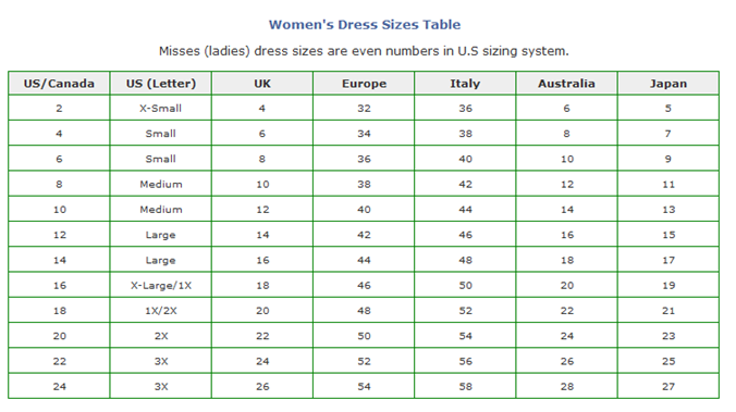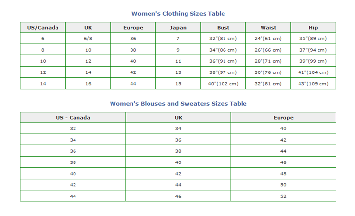 En ce qui concerne les femmes, la taille 9 est considérée comme le standard au Japon, et dans la plus part des magasins, ils ont des vêtements allant du 7 au 11. Toutes les autres tailles, inférieures ou supérieures, sont considérées comme « spéciales » et sont vendues dans des rayons appropriés, notamment dans les centres commerciaux. Toutefois, depuis que les grandes marques étrangères de fashion se sont implantées au Japon, les magasins proposent des gammes de tailles de vêtements plus larges.