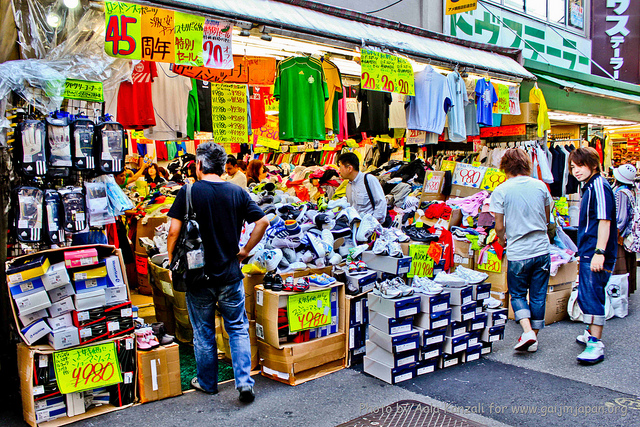 A Ameyoko, beaucoup de choses sont disponibles et vous y trouverez certainement votre bonheur, surtout que les prix y est généralement moins élevé qu’ailleurs, ce qui fera le bonheur de ceux recherchant un « Japon pas cher » ou de ceux ne voulant tout simplement pas exploser leur budget de voyage. Vous pourrez y manger à des tarifs plus qu’abordables, vous habiller pour peu cher et avec de la qualité, … Mais vous pourrez aussi tomber sur de la contrefaçon (notamment au niveau des parfums).