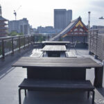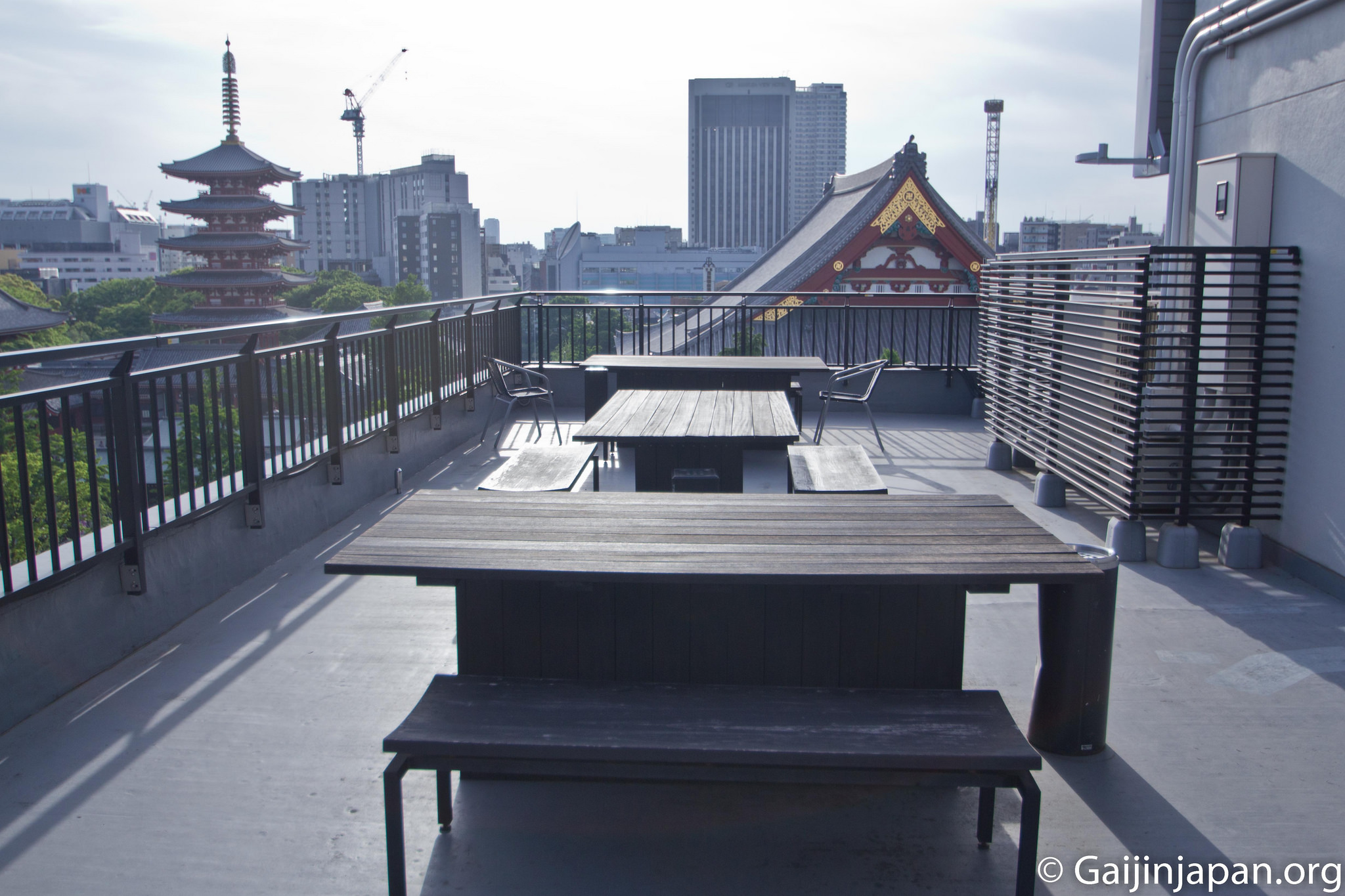 Le sixième étage est celui qui réserve quelques belles surprises. Entre le théâtre diffusant des explications sur les estampes japonaises, que vous pourrez retrouver exposées dans les escaliers ou couloirs, et le bar offrant une superbe vue sur les environs, vous aurez de quoi bien profiter de cet espace. Et puis, une fois sur le toit vous pourrez profiter librement de la vue sur le Senso-ji, la Tokyo Skytree et les environs.
