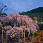 Ce parc est connu de beaucoup de japonais pour ses glycines, appelées Fuji en japonais (pas comme le Mont Fuji) dont l’un des arbres n’a pas moins d’une centaine d’années à son compteur. Lorsque vous arrivez sur place à la fin du mois d’avril, ou au début du mois de mai, vous vous retrouvez avec un magnifique spectacle d’une nature mise en scène et en valeur tout au long du lieu, d’un relaxant, entre les montagnes.