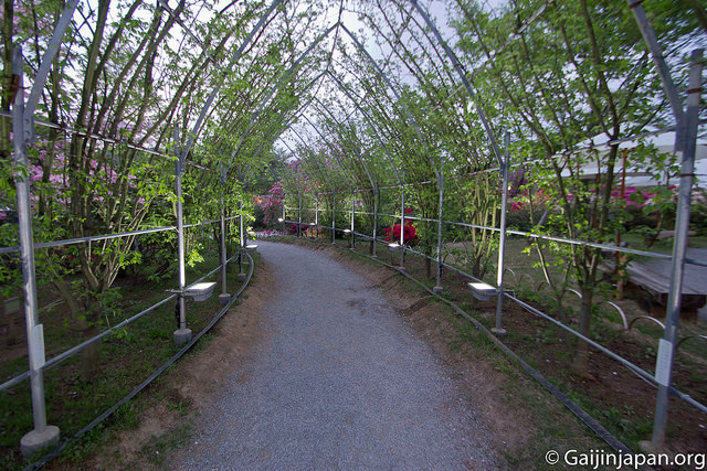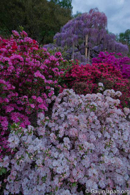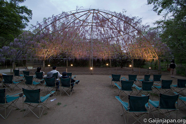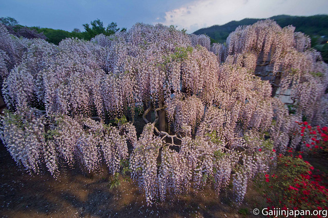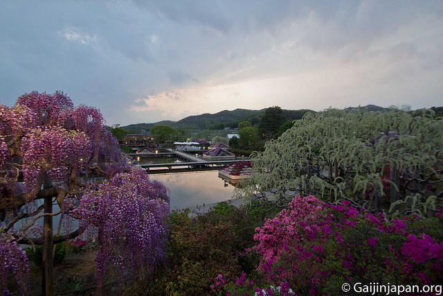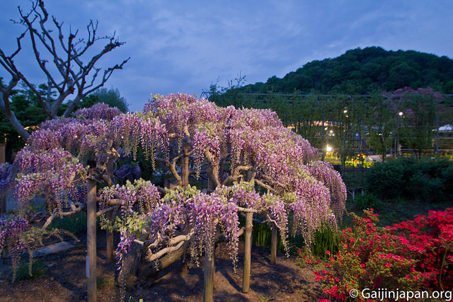 Ce parc est connu de beaucoup de japonais pour ses glycines, appelées Fuji en japonais (pas comme le Mont Fuji) dont l’un des arbres n’a pas moins d’une centaine d’années à son compteur. Lorsque vous arrivez sur place à la fin du mois d’avril, ou au début du mois de mai, vous vous retrouvez avec un magnifique spectacle d’une nature mise en scène et en valeur tout au long du lieu, d’un relaxant, entre les montagnes.