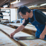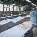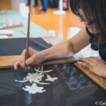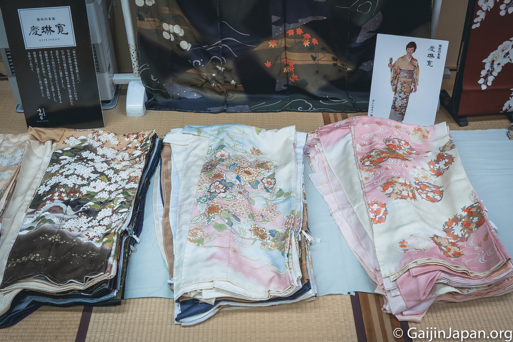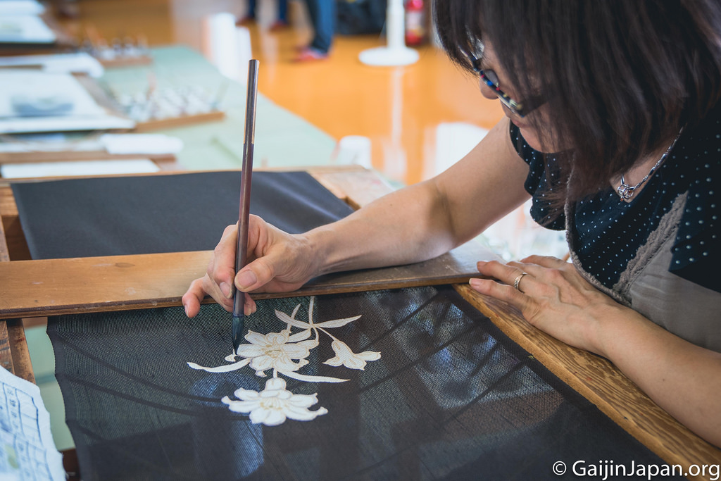 C’est direction la fabrique d’Aoyagi Kimono où j’ai pu admirer en direct l’ensemble des processus de fabrication des Kimono japonais à la main : la teinture, le tissage, …. J’ai tout vu, observé, admiré et j’ai même pu m’essayer à la teinture d’un motif de Kimono avec pinceau et laissez-moi vous dire que c’est extrêmement difficile. Pas étonnant qu’il faille six mois en moyenne pour fabriquer un Kimono à la main en partant de zéro, pas étonnant non plus les prix auxquels peuvent être vendus certains Kimono (plusieurs dizaines de milliers d’euros).