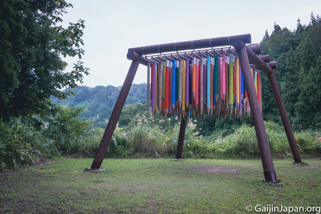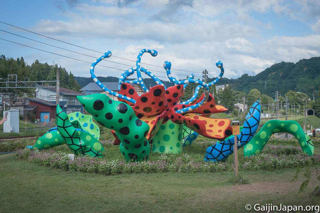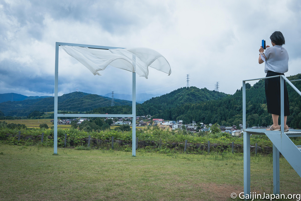 J’y suis allé pour découvrir la Triennale d’Echigo Tsumari, un événement d’art moderne qui prend place tous les trois ans depuis 2000 et qui met en place des œuvres d’artistes du monde entier en harmonie avec la nature et avec pour but ultime de dynamiser à nouveau cette région dont la population chute et vieillit. Je ne suis pas un grand fan d’art, disons-le clairement, mais pourtant j’ai apprécié découvrir certaines des œuvres exposées, notamment celle directement dans la nature qui donnaient des sensations fortes de communion, comme si les productions de la nature et celles de l’Homme ne faisaient qu’un.