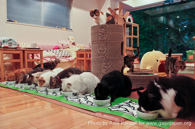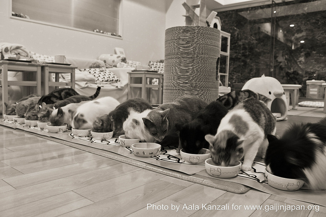 Café à chats? Bar à chats? Neko Kissa (猫喫茶)? Neko café (猫カフェ)? Peu importe l’appellation qui leur est attribué, ces lieux sont les mêmes et sont très populaire au pays du Soleil-Levant. Ces établissements où les clients viennent boire un café tout en caressant les félins mis à leur disposition.