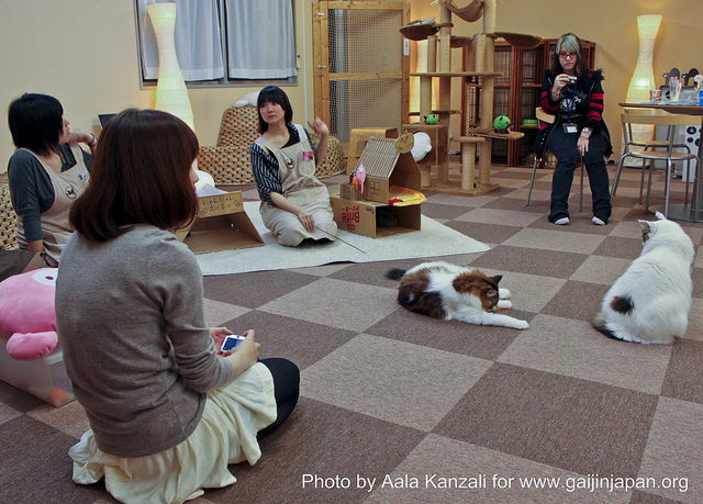 C’est d’ailleurs cet aspect de relaxation qui fait le succès de ces lieux originaux (avec les cafés à lapins ou les cafés à hiboux au Japon). En effet, les japonais sont souvent confrontés au stress du quotidien, et ces Neko Kissa leur permettent de s’évader et de jouer avec des animaux qu’ils n’ont pas nécessairement chez eux. Il ne faut pas oublier que les logements au Japon sont soit trop petits, soit interdisent la présence de félins, pour une grande partie, comme vous pouvez le voir dans mon article « louer un appartement au Japon« , et de ce fait, ces cafés permettent de venir jouer avec les chats et de se relaxer loin de son quotidien.