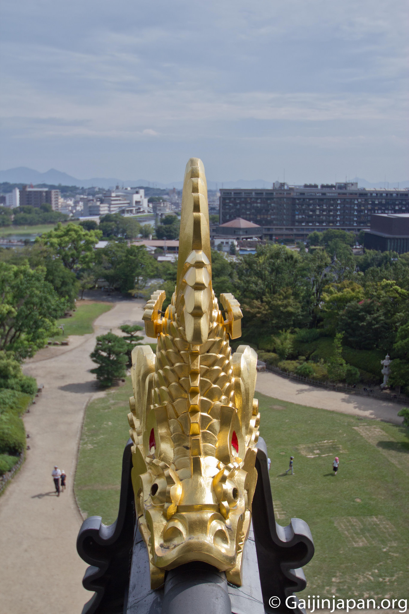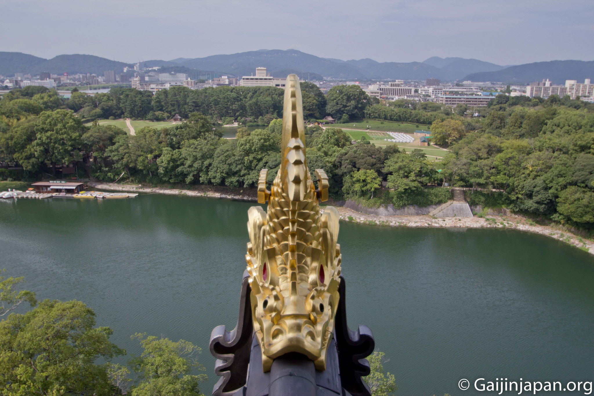 La promenade aux alentours du château a d’apaisant sa vue sur le bâtiment noir mais aussi la rivière adjacente et la verdure foisonnante. Elle est appréciée durant la période des Sakura pour son calme et sa beauté.