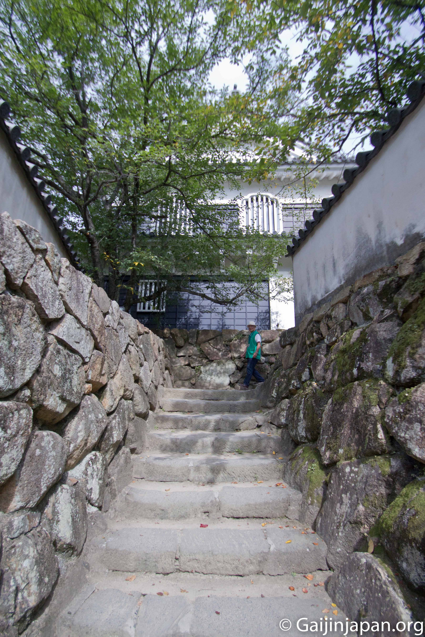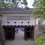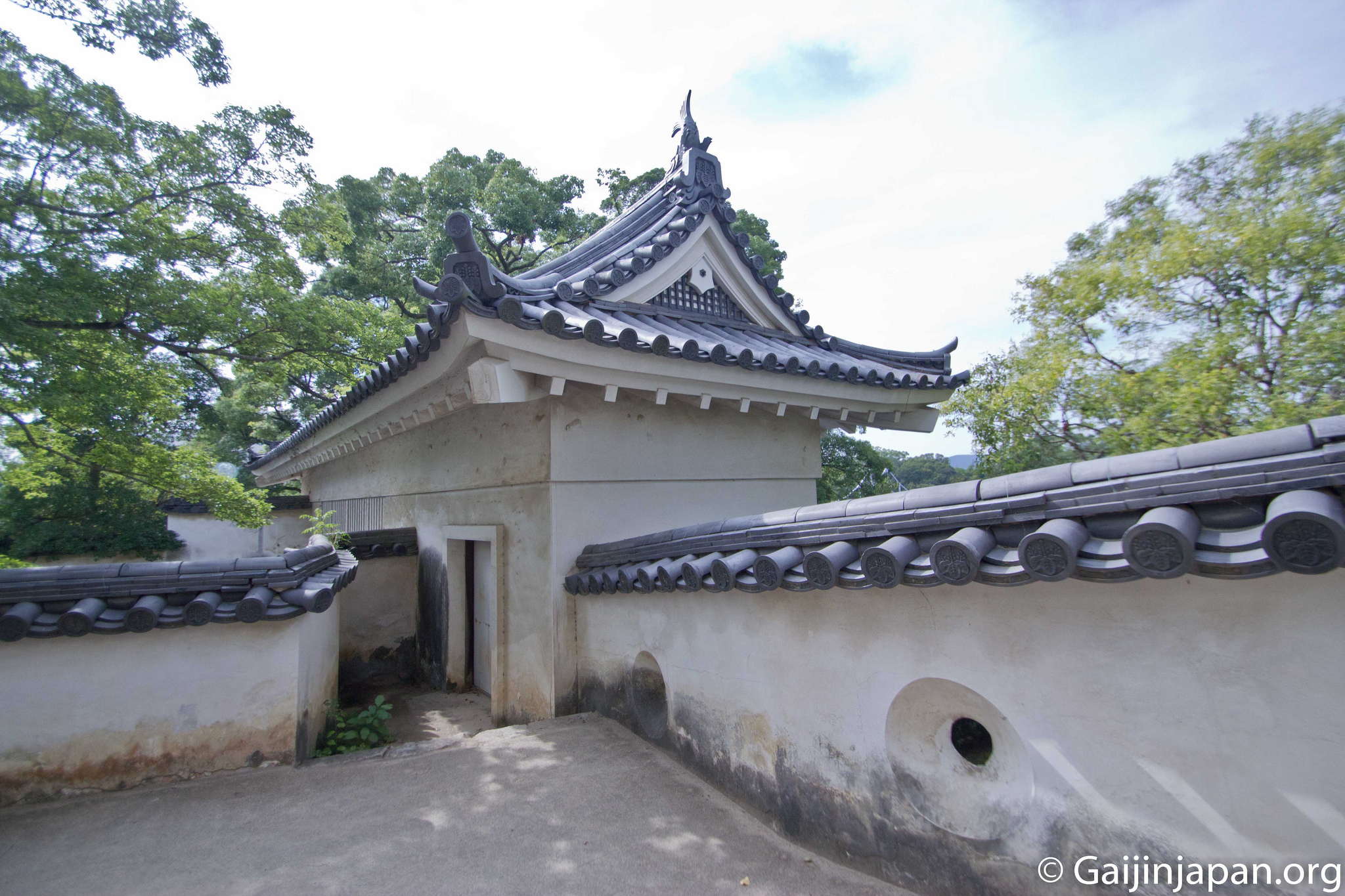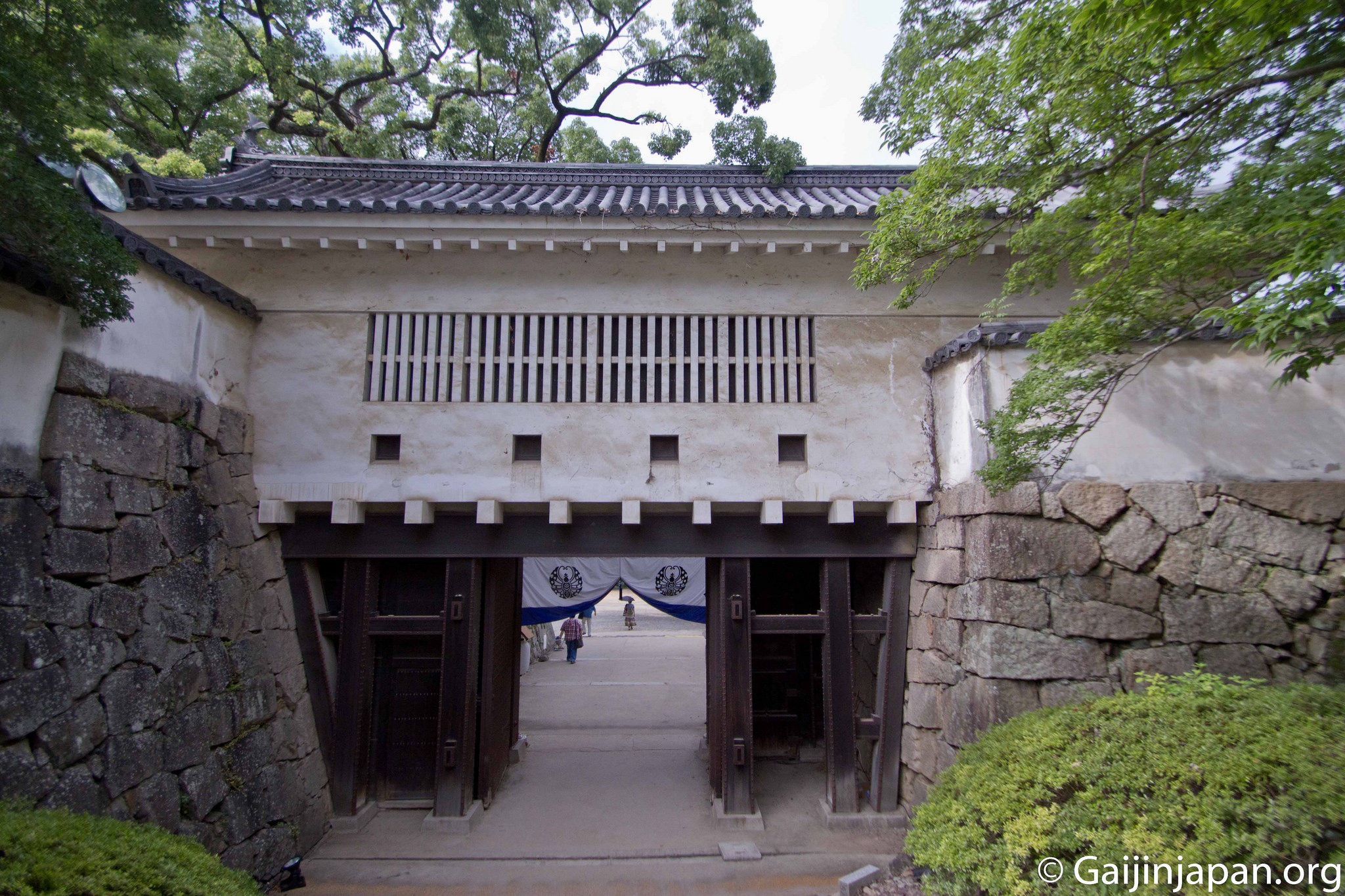 Après avoir longé en partie le fleuve Asahi, on arrive à l’entrée du Okayama-jo et plus précisément de ses remparts. On traverse une porte et se retrouve sur le site de l’ancien château, dont il ne subsiste que quelques éléments.
