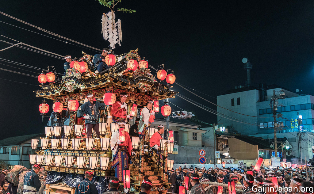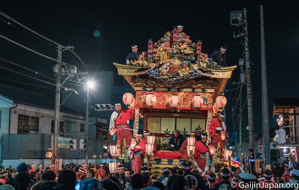 Il s’agit d’un festival Shinto de chars flottants qui se déroule tous les ans les 2 et 3 décembre et ce malgré le froid qui peut régner sur place, la ville étant enclavée entre les montagnes avoisinantes, non loin du sanctuaire Chichibu.