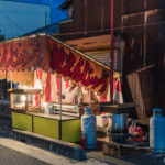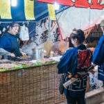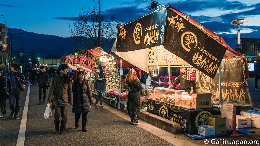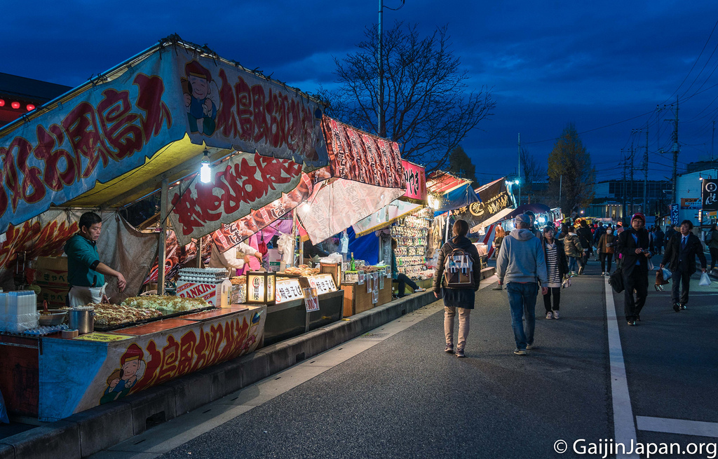 Vous pourrez profiter des nombreux Yatai, ces petits stands proposant différentes spécialités culinaires japonaises, pour vous ravitailler et boire de l’Amazake (alcool de riz chaud, souvent sans alcool) pour vous réchauffer.