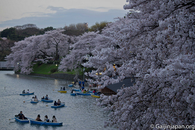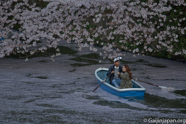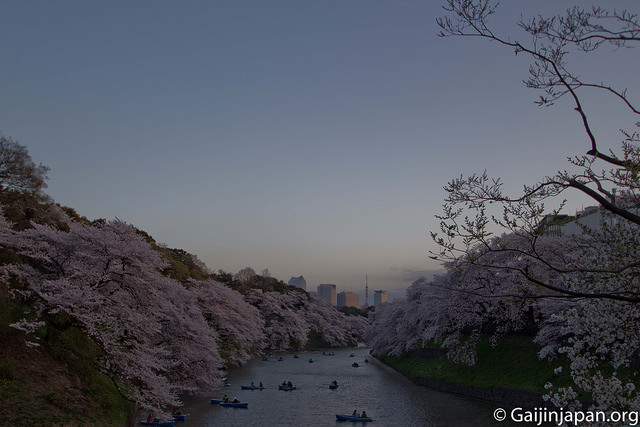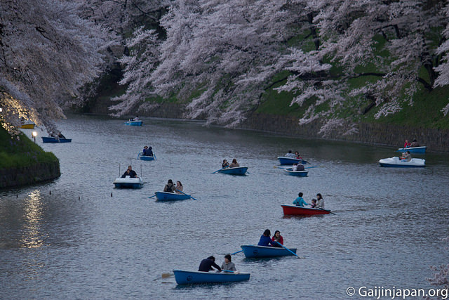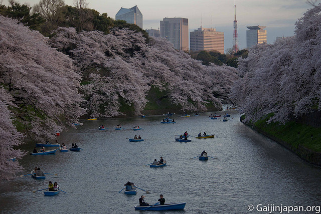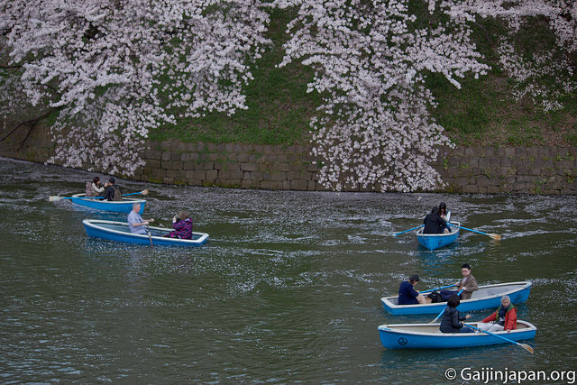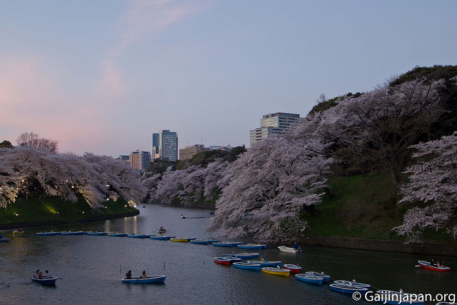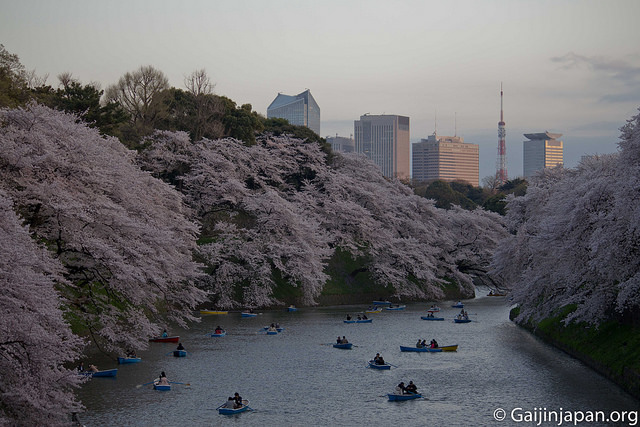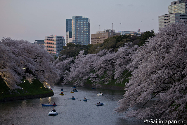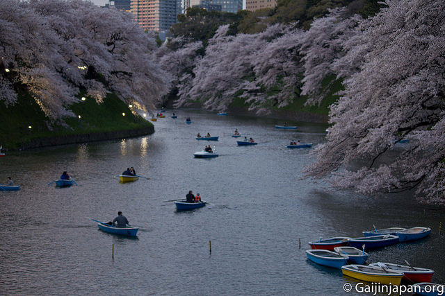 Tous les ans, à la même période de l’année, au début du printemps (fin mars / début avril) c’est la saison des Sakura au Japon. Et, tous les ans, on n’échappe pas à ces célèbres photos de cerisiers en fleurs au bord de ce qui semble être une rivière, avec des barques par dizaines et des couples en train de ramer au beau milieu des pétales de cerisiers qui tombent comme de sublimes flocons de neige, ce spectacle ayant lieu à Tokyo. Il s’agit là de Chidorigafuchi (千鳥ヶ淵), douve Nord-Ouest de l’ancien château de Edo.
