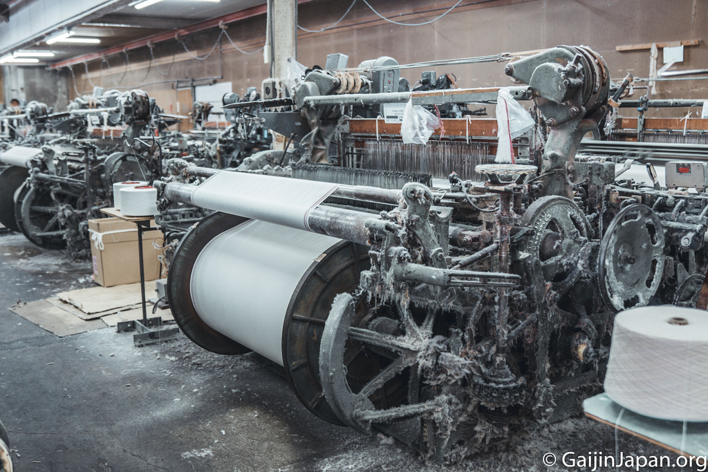 Ensuite, je suis parti à la visite de Takeyari, société locale spécialisée dans la production de toile. Là aussi, même si les machines sont présentes, il est intéressant de voir que la production reste locale et surtout qu’elle est minutieuse, au point de voir des employés vérifier chaque tissu fabriqué un par un, au millimètre près !