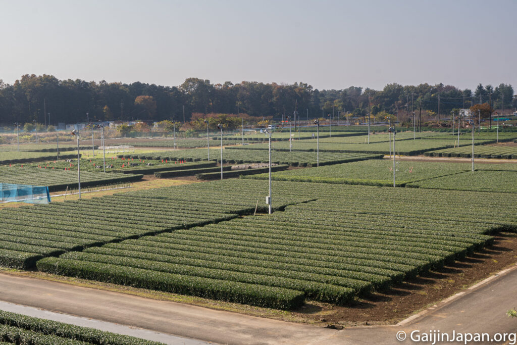 J’ai donc passé la journée à Iruma (Saitama) pour découvrir la production locale de thé. Et la première chose qui m’a frappé ce sont tous ces champs de thé, plats, à perte de vue, que je –pouvais voir en bord de route. Il y en avait de partout, c’était sans fin et d’une certaine beauté.