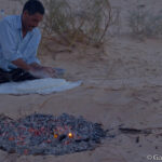 Et ce sentiment de joie s’est installé le soir venu, lorsqu’en plein désert, seul avec nos deux guides, nous avons passé la nuit à la belle étoile, sans même dormir dans nos tentes, à admirer la lune et les étoiles. Le matin, nous avons pu admirer le lever du soleil pendant que notre guide nous préparait du pain à même le sable. Là, ma belle mère se tourna vers moi et me dit « à la télé au Japon j’avais vu une émission où ils montraient un bédouin préparer du pain de la sorte, et aujourd’hui je le vois de mes propres yeux ». L’expérience désert fut une excellente réussite qui plu à tout le monde, surtout ma femme qui ne demande qu’à y retourner.