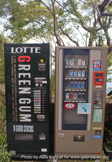 Tabac, alcool, produits hallucinogènes …, ?!?!: Ils sont très fréquent, enfin surtout les deux premiers puisque les produits hallucinogènes (avant vendus dans certains distributeurs automatiques https://www.japantimes.co.jp/news/2012/05/22/news/hallucinogens-sold-in-vending-machines-legit/ ) sont illégaux depuis la coupe du monde de foot en 2002. Donc, techniquement ces produits sont accessibles à tous, et notamment aux enfants (enfin pour les distributeurs de tabac il faut obligatoirement posséder une carte, vendue uniquement aux personnes majeurs, pour pouvoir les utiliser). Et puis il y a aussi les distributeurs à vidéos porno, à sous-vêtements féminins utilisés, …. Jusqu’où ? Nul ne sait vraiment.