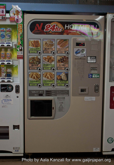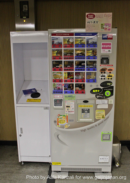 6. Pratique pour les gens pressés : les japonais sont pressés il paraît. Et bien c’est  là que les distributeurs automatiques jouent un rôle important. Plus besoin de faire la queue pour acheter un journal, un café, un sandwich ou votre repas. Les distributeurs vous les proposent à porter de main et de manière rapide