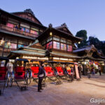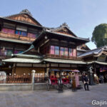 A Matsuyama bon nombre de touristes étrangers comme Japonais aiment à se promener, souvent en Yukata, dans le quartier de Dogo Onsen qui abrite la plus ancienne source d’eau thermale du pays, le plus ancien Onsen du Japon. Et c’est dans ce quartier que s’élève un bâtiment qui attire la foule, avec sa structure entièrement en bois et son ancienneté qui remonte à l’ère Meiji : Dogo Onsen Honkan.