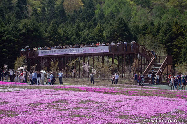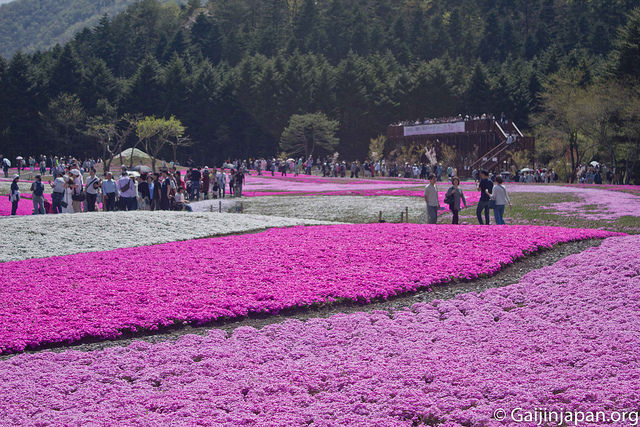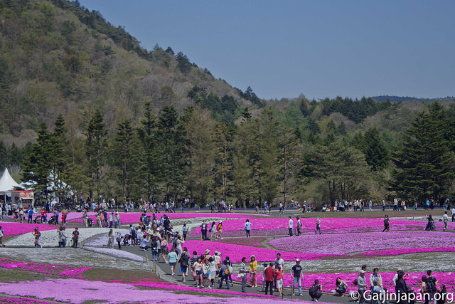 A peine à 3 km du lac Motosuko (dans la région des 5 lacs du Mont Fuji), en pied du Fuji, l’emplacement est juste idéal pour admirer les fleurs par milliers (plus de 800.000 fleurs présentes) réparties en cinq variétés différentes pour trois couleurs (rose, violet, blanc), ce qui offre un parterre coloré des plus beaux à tous les visiteurs, qui en profite pour immortaliser le tout avec leurs appareils photos.