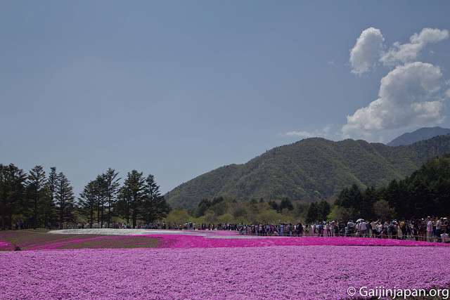 Au Japon, admirer les fleurs est un véritable sport national, une passion dont les japonais raffolent. Entre les Sakura, les Ume Matsuri, les fleurs bleues du Hitachi Seaside Park, les glycines du Ashikaga Flower Park, les Momiji …. j’en passe et des meilleurs, il y a de quoi faire. Ce qui est le plus impressionnant ce n’est pas tant les fleurs mais toute les mises en scènes mises en place pour les magnifier au maximum, et le Fuji Shibazakura Matsuri n’échappe en rien à cela.