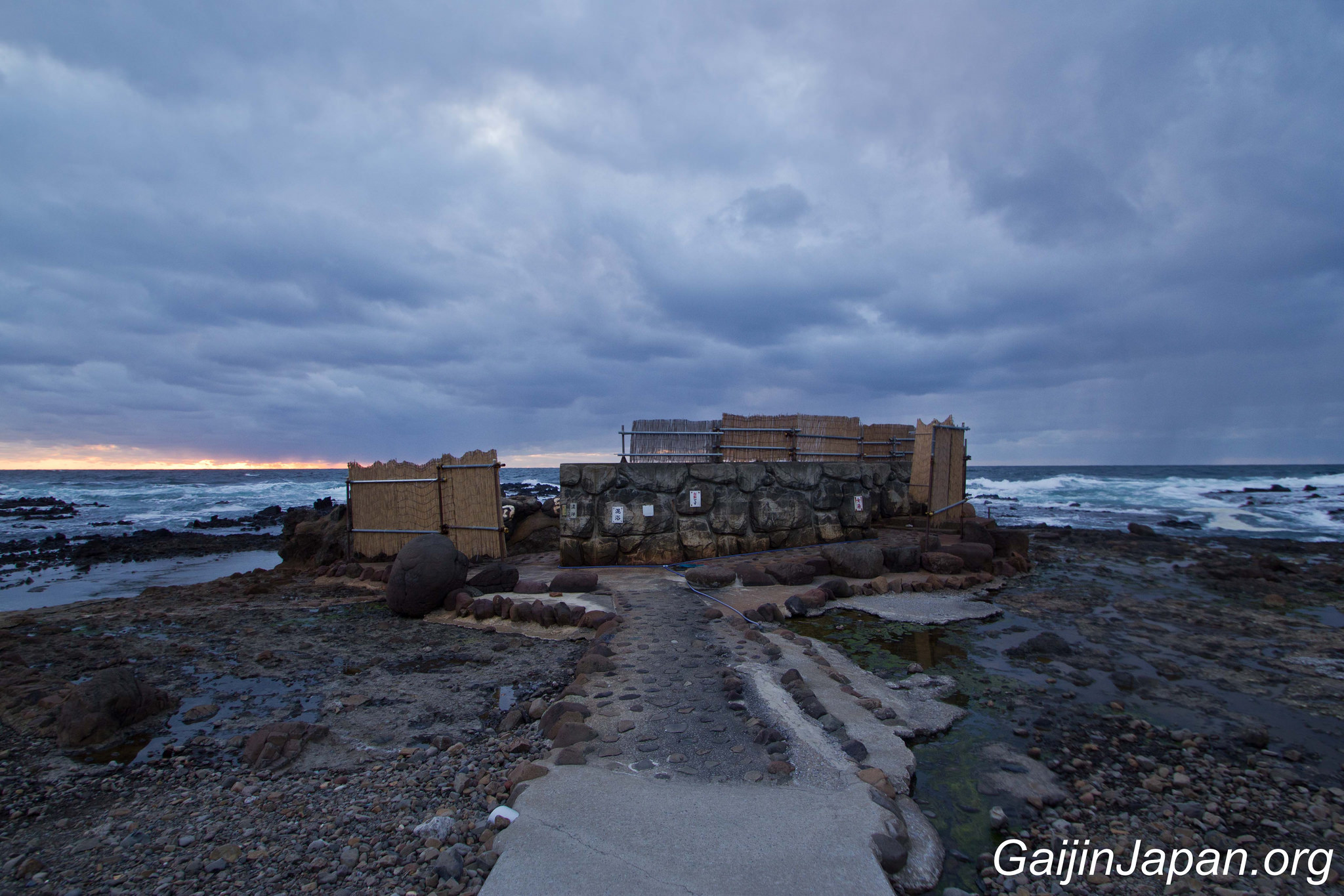 Imaginez-vous, dans une eau à température idéale, ni trop chaude, ni trop froide, avec le bruit des vagues qui viennent taper ou frotter le bord du bain, le parfum de la mer qui vous entoure le tout accompagné d’un sublime coucher de soleil ! « Et bien, ne l’imaginez plus et vivez le au Furofushi Onsen », voila le message que l’on pourrait passer pour vendre cette expérience et il ne serait en rien usurpé, bien au contraire. Les mots seront toujours insuffisants pour décrire cette expérience d’un autre genre.