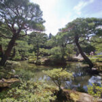 A proximité du Hondo vous pourrez voir le Togudo qui est le seul temple d’origine, avec le pavillon d’argent. Puis on passe au niveau du jardin de mousse avant de prendre de la hauteur sur la colline, qui offre une superbe vue sur l’ensemble du site et de la ville de Kyoto au loin. Et lors de la descente, en se dirigeant vers la sortie, on repasse à proximité du pavillon d’argent bordé par un étang.