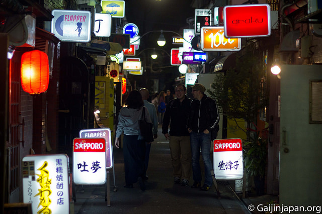 – parler le japonais: une bonne partie des établissements n’acceptent que les clients parlant le japonais, du fait de l’espace assez restreint et qu’il faille souvent être capable de communiquer avec le tenancier et les autres clients. Si vous ne parlez pas le japonais, vous trouverez les établissements qui acceptent les étrangers en repérant les signes en anglais disant « Foreigners Welcome ».