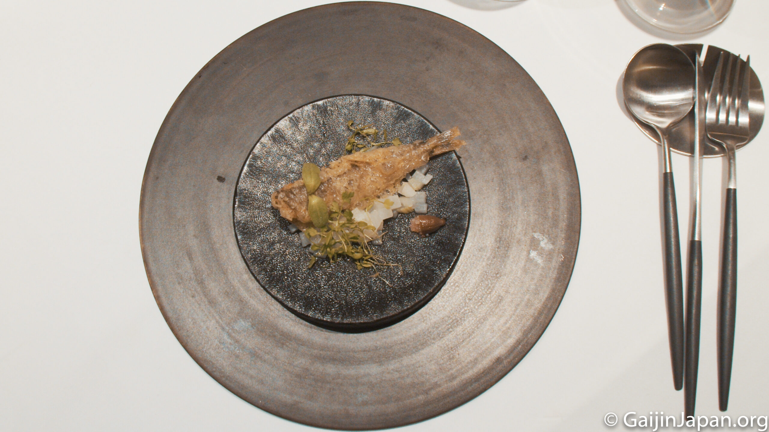 En plus de la fraicheur, l’un des éléments les plus importants pour Hagi Harutomo est d’acheter ses ingrédients, même le vin (chez le vignoble Iwaki Winery) uniquement auprès de producteurs de la ville d’Iwaki. Le but est de garantir la fraicheur mais aussi d’aider ces derniers à vendre leurs productions et les faire connaître. C’est sa façon, à lui, d’aider sa ville à se relever. Et pour aller encore plus loin dans son concept, il a décidé de servir qu’un seul groupe par jour.