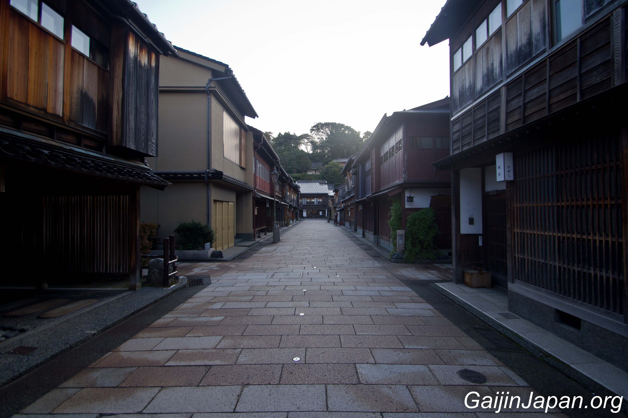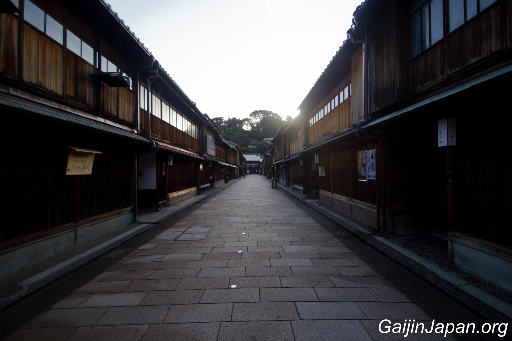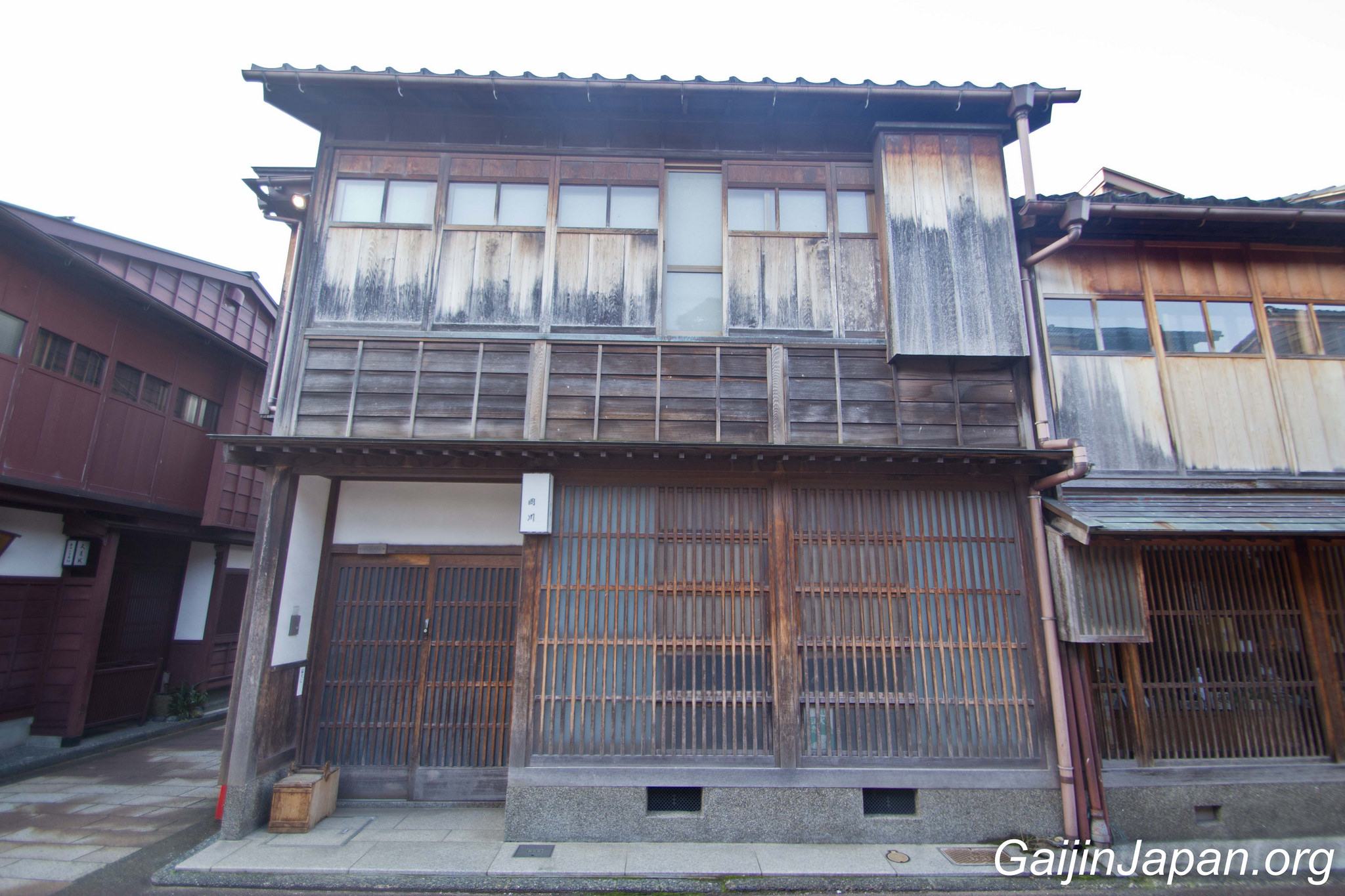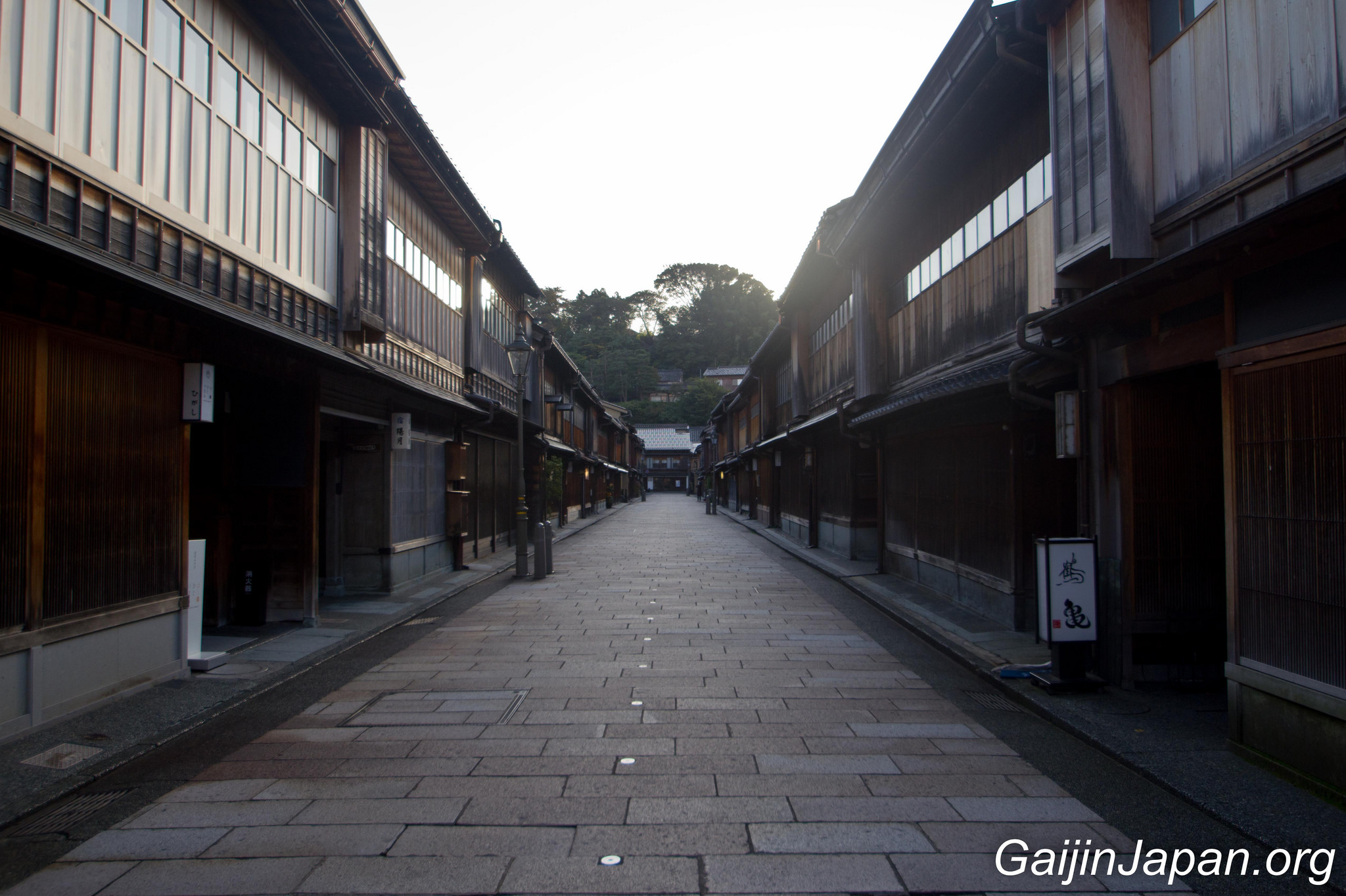 Durant l’époque Edo, il y avait des Chaya à Kanazawa, un peu de partout, parsemé dans la ville. Puis, en 1820 elles ont été réunies en quatre quartiers différents, éloignés du centre de la ville. Le plus grand de ces quartiers n’était autre que Higashi Chaya Gai (東茶屋街). Il consiste en une allée principale où sont alignées, face à face, de nombreuses Chaya avec leur façade en bois composée d’une partie appelée « Kimusuko », des croisillons en bois.