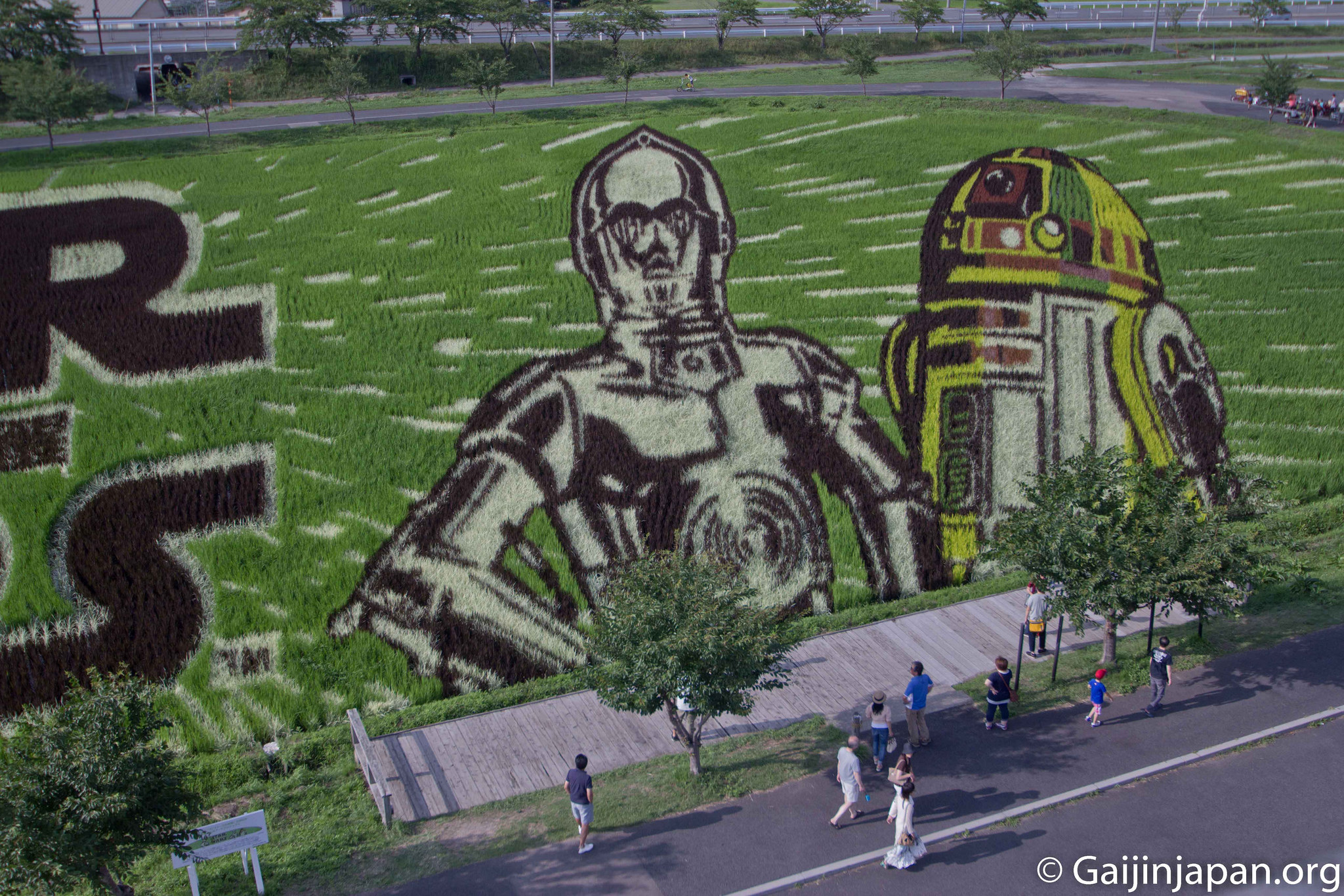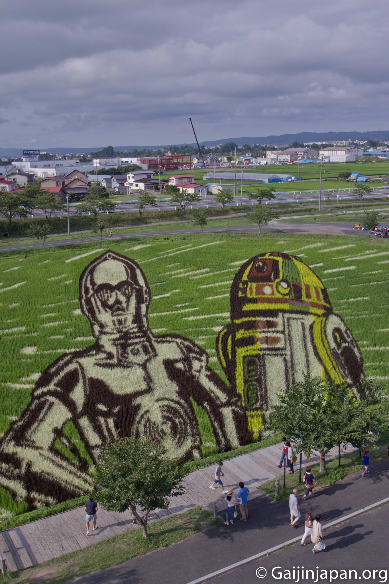 C’est en 1993 que les habitants du petit et peu connu village d’Inakadate recherchaient un moyen de revitaliser leur citée. Et, en se basant sur des études archéologiques qui avaient démontrées que le village produisait du riz depuis plus de 2.000 ans, les habitants ont décidés de faire honneur à leur fier passé. Ainsi, depuis cette année là, juste derrière la mairie, une rizière est utilisée, tous les ans, afin d’y faire pousser du riz de couleurs différentes, le tout dans le but de représenter des fresques que l’on peut observer en hauteur.
