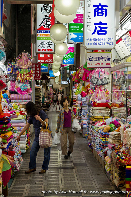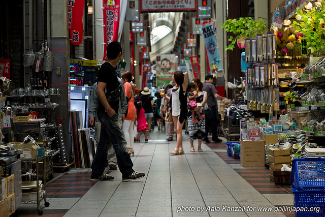Nous sommes passés par les quartiers de Doguya-Suji (sorte de Kappabashi local, où vous pouvez trouver votre bonheur au niveau vaisselle et art de la table), Nipponbashi (l’équivalent d’Akihabara, version Osaka, où les choses se ressemblent un peu), et d’autres petites ruelles en tout genre.