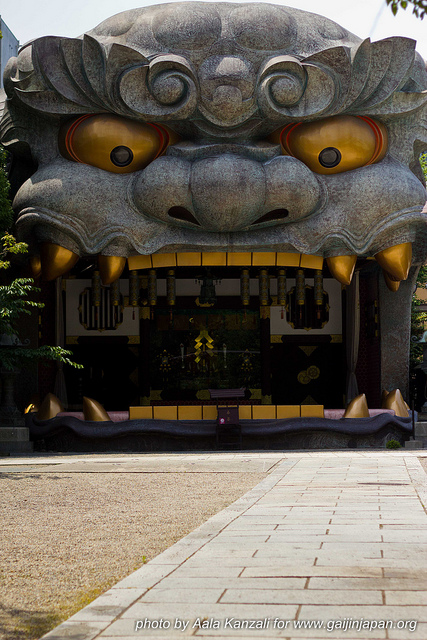 Puis on a fait un stop au Namba Yasaka-Jinja. Un sanctuaire assez particulier, dont l’un des bâtiments n’est autre qu’une grande tête de tigre ayant la bouche grande ouverte. C’est assez impressionnant à voir en soit