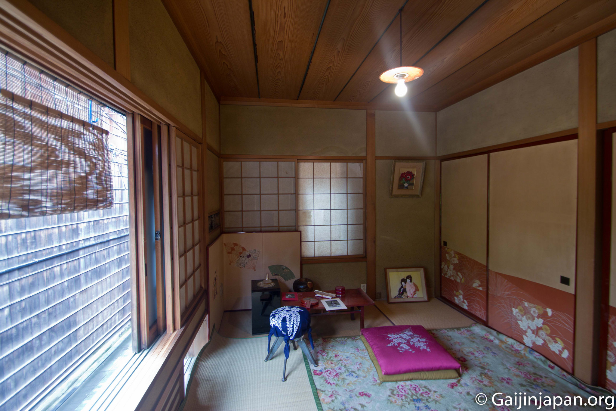 Une fois que l’on passe la porte d’entrée de cette maison, qui ne paye pas de mine depuis l’extérieur, on se retrouve transporté dans le temps, dans un temps pas si éloigné mais unique en son genre. Le fait de ne pas pouvoir entrer dans une Okiya, dans la grande majorité des cas, offre un charme particulier à cette maison.