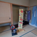Le plus dépaysant est d’admirer tous les détails que recèle cette maison, entre fenêtres aux utilisations spécifiques, anciens kimonos utilisés pour décorer les pièces et portes de la maison, le bois venant de Nara, Kyoto ou encore Niigata et le bambou utilisé sur place, on se rend vite compte de la complexité artistique d’une Okiya, et de sa praticité, comme le fait qu’il y ait deux escaliers dans la maison afin que les clients ne se croisent jamais.