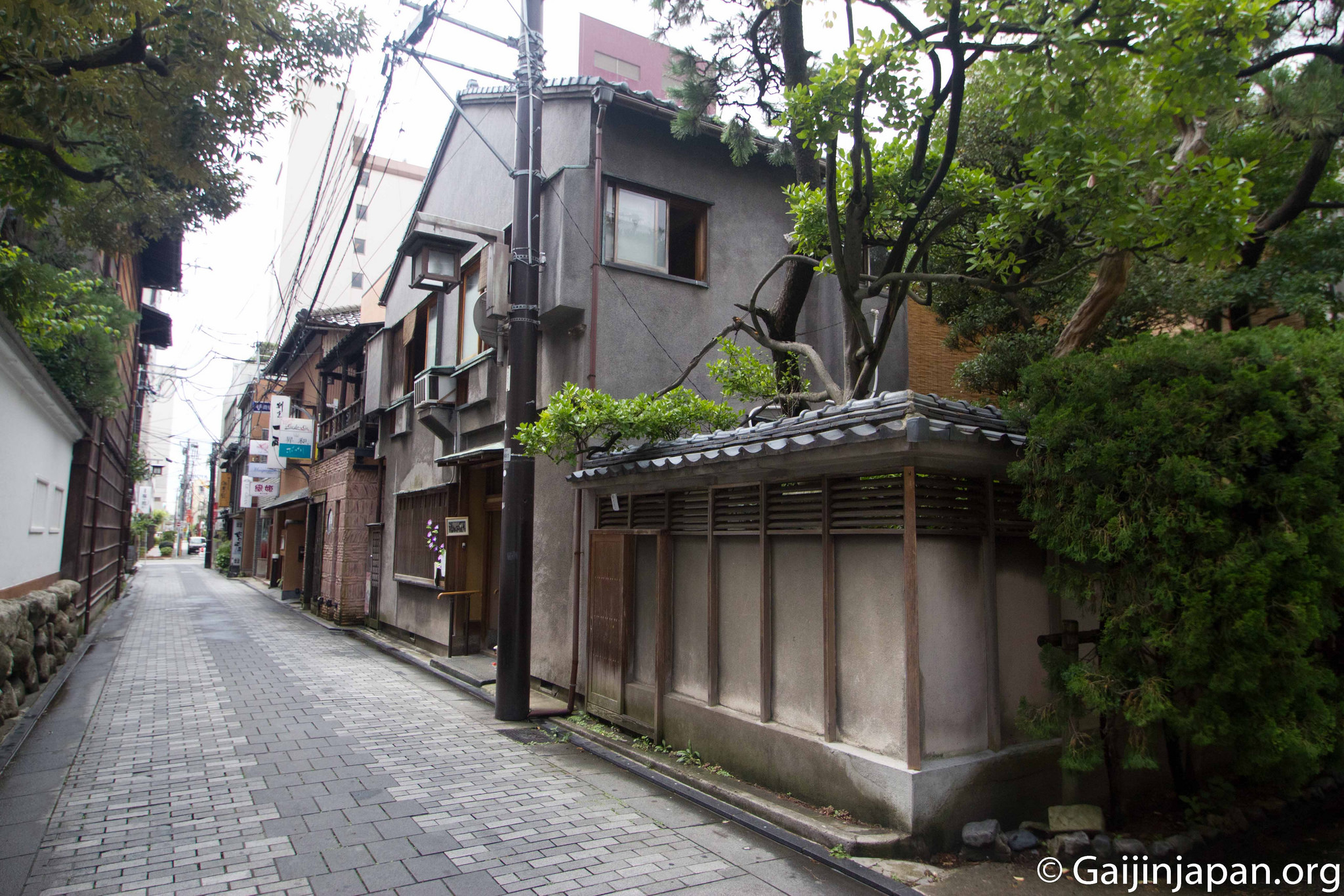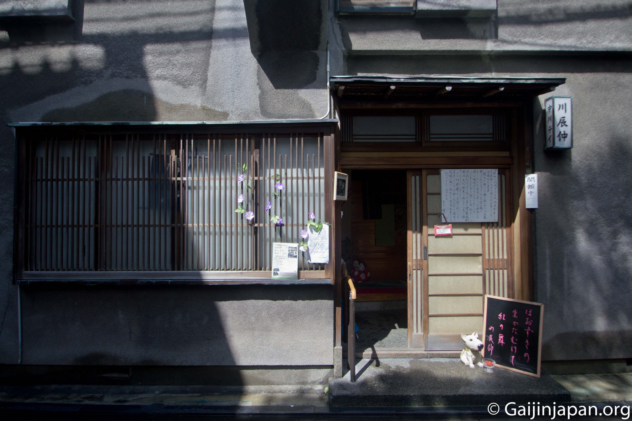 C’est une maison datant d’il y a plus de 100 ans qui porte le nom Kawatatsunaka. Située en plein coeur des restes de ce quartier d’époque, qui a fortement été ravagé par un incendie en 1955, il s’agit d’une Okiya (置屋), là où vivait des Geisha, ou Geigi comme elles sont appelées sur place. Cette maison à la façade grise est composée de la partie principale construite il y a plus de 100 ans et d’un allongement ajouté il y a une soixantaine d’années. C’est au sein de cette maison (Okiya) que vivaient les Geisha et y apprenaient les arts japonais tels que le Shamisen ou encore la danse.