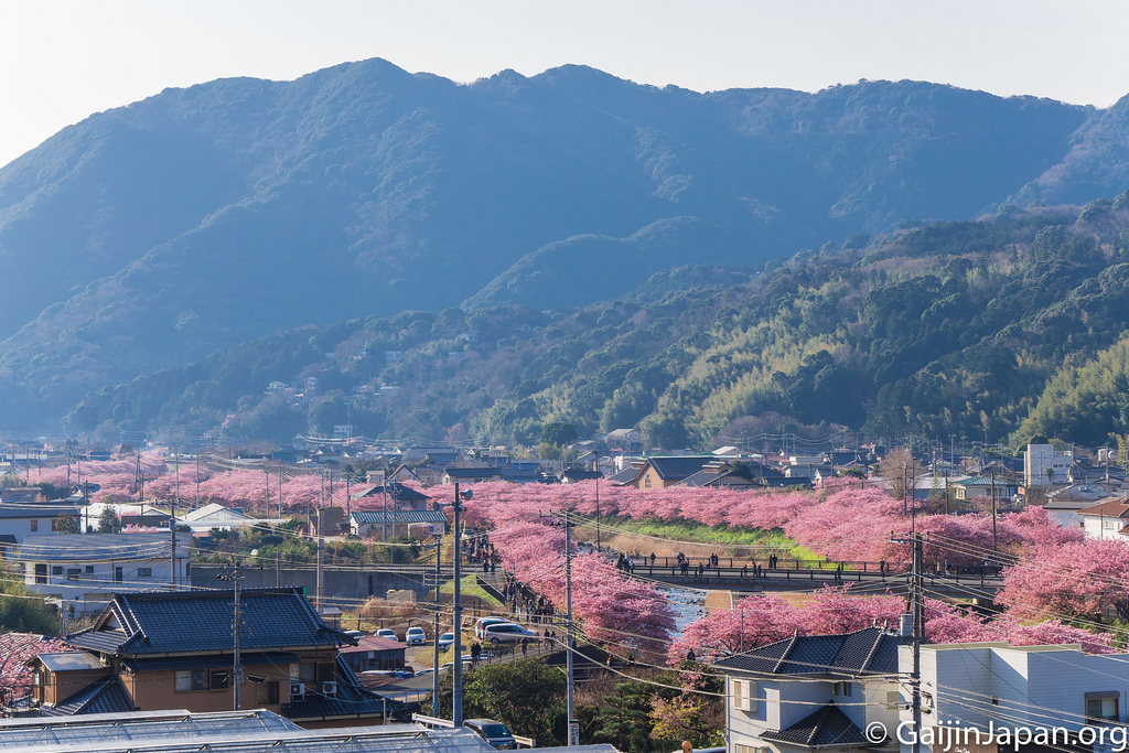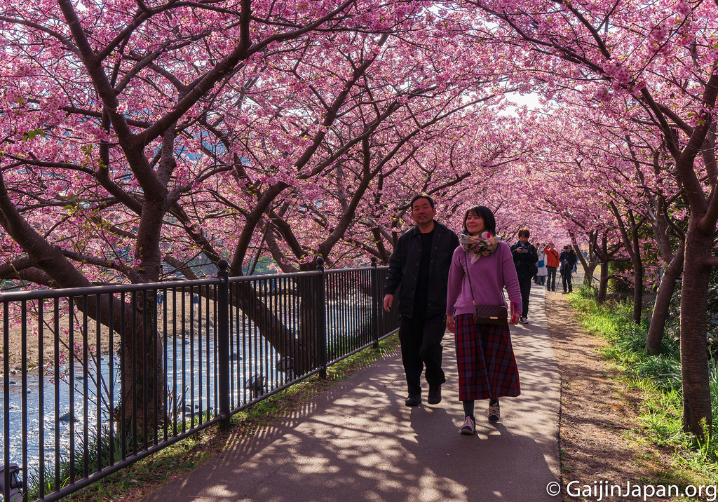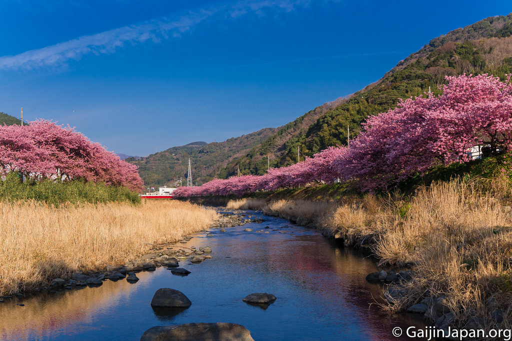 Les sakura au Japon sont une véritable institution, attendus pendant toute l’année par les Japonais comme les touristes étrangers. Dès que la météo des Sakura annonce leur floraison prochaine (à compter du mois de janvier) tout le monde commence à scruter, plus ou moins, les dates pour planifier quand admirer au mieux les fleurs de cerisiers du Japon, d’ailleurs beaucoup de touristes étrangers planifient leur voyage au Japon en fonction de ces dernières. En général, la floraison est attendue de fin mars à début avril, chaque année, à des dates variables en fonction de la météo. Mais, à Kawazu, péninsule d’Izu, les sakura fleurissent de manière précoce au cours du mois de février.