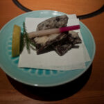 Les plats sont bons, s’enchaîne à une vitesse rapide et sont variés. On mange de la baleine en sashimi, en miso soupe, frite et cuite avec une sauce. Toutes les cuissons offrent une saveur différente et nous laissent sur notre faim, notamment à cause de la taille des portions servies. Pour ma part, la baleine frite fût ma préférée et de loin, quoi que les autres étaient aussi bonnes.