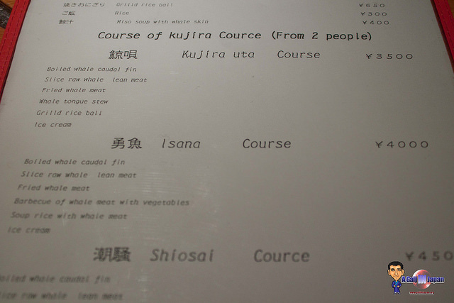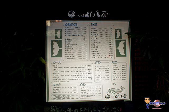 Kujira en japonais signifie « baleine » et ya veut dire « magasin », donc comme son nom l’indique si bien, ce restaurant ne fait que de la baleine. Il est situé juste derrière le magasin 109, sortie Hachiko à la station JR Shibuya. En avril 2012 (et oui cela remonte à longtemps), je m’y suis rendu avec une autre personne, en milieu d’après-midi, afin de tester cela, par curiosité.