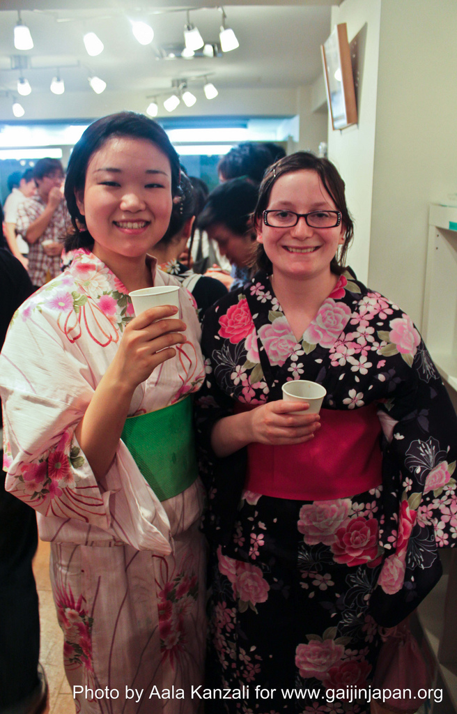 Mais aujourd’hui est un jour particulier. C’est un Samedi, et qui dit Samedi dit Leafcup Internationale Party. Et oui, tous les Samedi Leafcup organise des soirées où les étrangers et les Japonais se réunissent et profitent du moment pour se rencontrer et échanger. Aujourd’hui la soirée à lieu à Leafcup Shibuya. Et le thème de cette soirée est : Yukata Party. En clair tout le monde doit, au moins essayer, de porter un Yukata (Kimono d’été) afin d’avoir une ambiance originale. Il s’agit là d’une occasion pour moi d’essayer quelque chose de typiquement Japonais.