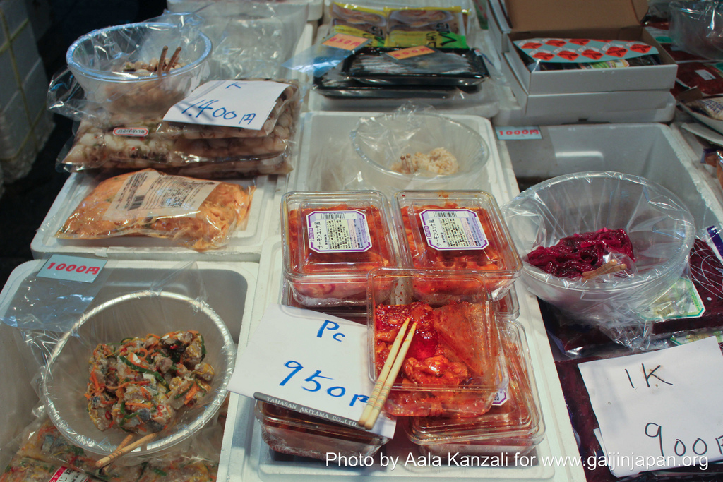 La visite du marché extérieur vous permettra de flâner dans les différentes boutiques sur place et de vous restaurer dans l’un des quelques restaurants se trouvant sur place. Ma recommandation va vers l’un des deux plus populaires restaurants de sushi du quartier. Ils sont petits, ne payent pas de mine, mais la file d’attente pouvant aisément atteindre 1H30 ne vous trompera pas. On peut y savourer, en y mettant un peu le prix (comptez plus de 3.000 Yens par personne), de succulents sushi d’une qualité difficile à égaler.