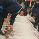Pour pouvoir assister aux ventes aux enchères de thons rouges au sein du marché de Tsukiji il va vous falloir vous lever tôt, vous armer de patiente et avoir la chance d’obtenir l’une des rares places disponible.
