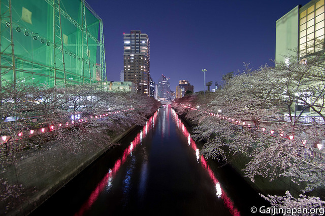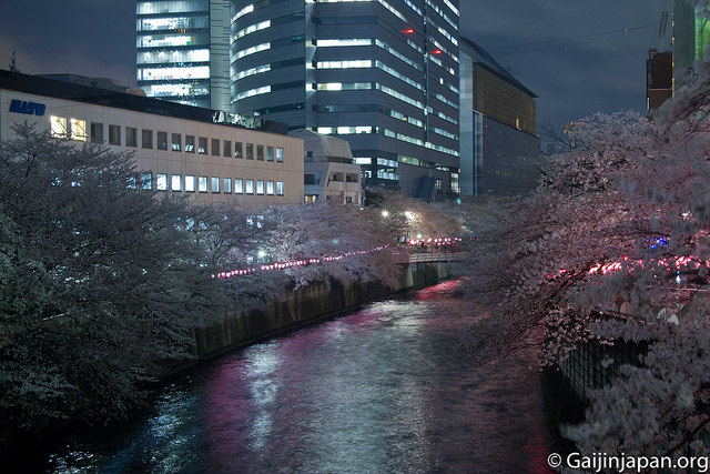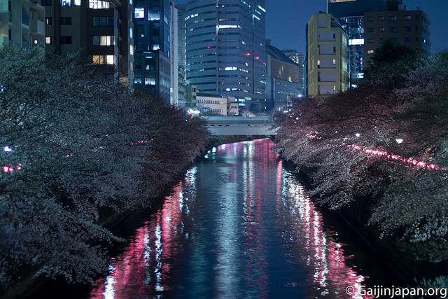 Lors de la période des Sakura, les quelques centaines de cerisiers (environ 800) offrent un paysage magnifique avec des branches qui basculent sur l’eau et forment une sorte de tunnel ou de tapis de fleurs de cerisiers, entre blanc et rose. C’est à cette période de l’année que se déroule le Sakura Matsuri de Megurogawa, durant lequel les rives de cette rivière seront prises d’assaut par les passants, les curieux, les couples et autres personnes venant admirer le spectacle, qui même de jour offre de belles vues entre eau, bâtiments et cerisiers. Mais le moment le plus prisé reste la nuit venue.