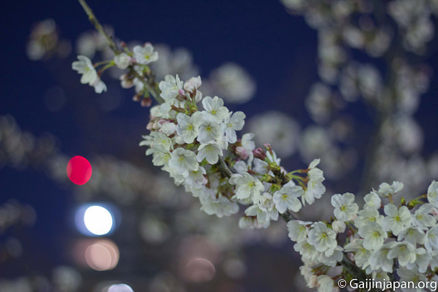 Pendant une semaine et demi, environ, au début du printemps, tous les soirs, à la nuit tombée, des lampions blanc et rouge vont s’éclairer pour offrir un spectacle magnifique autour des cerisiers en fleurs, à tous ceux qui se trouvent dans les environs. Ainsi, jusqu’à 21H00 environ, ces lanternes de papiers brilleront de milles feux et feront resplendir les Sakura comme par magie, autour d’une eau qui réfléchira les éclats roses / rouges de ce spectacle.