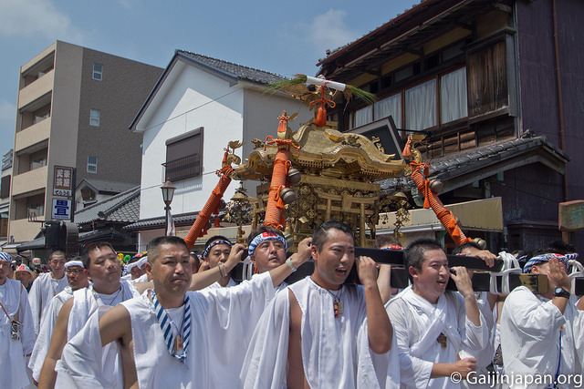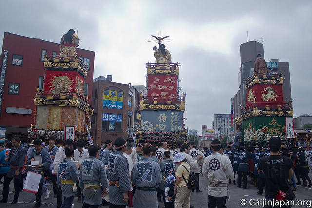Comme dans de nombreux Matsuri, si ce n’est tous ou presque, un Mikoshi, contenant la divinité du temple, est paradé dans les rues de la ville, le tout de manière très festive. Mais ce qui marque le plus les esprits lors de ce festival, outre les dix chars d’une taille assez imposante, ce sont les nombreuses danses qui sont exécutées par les participants.