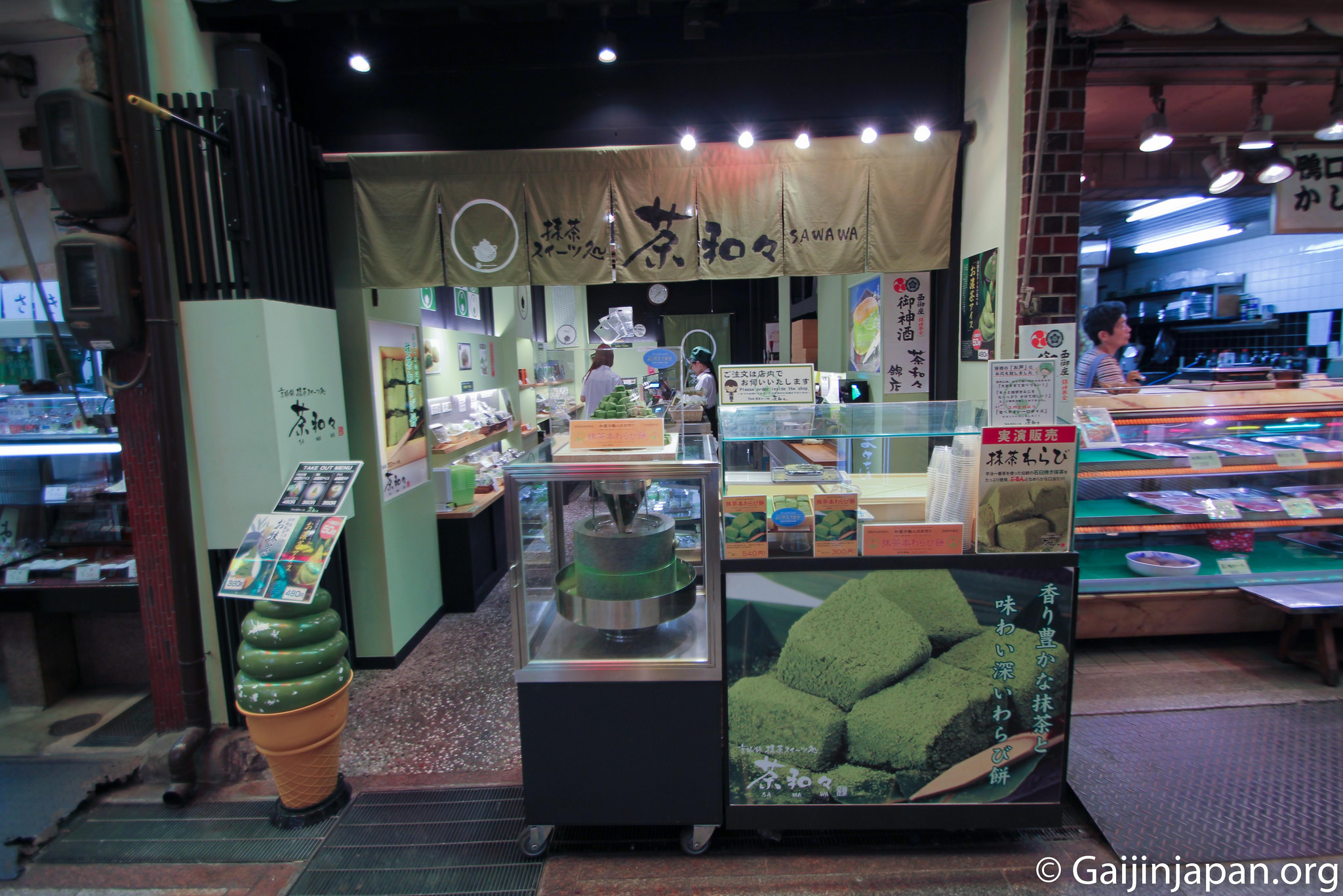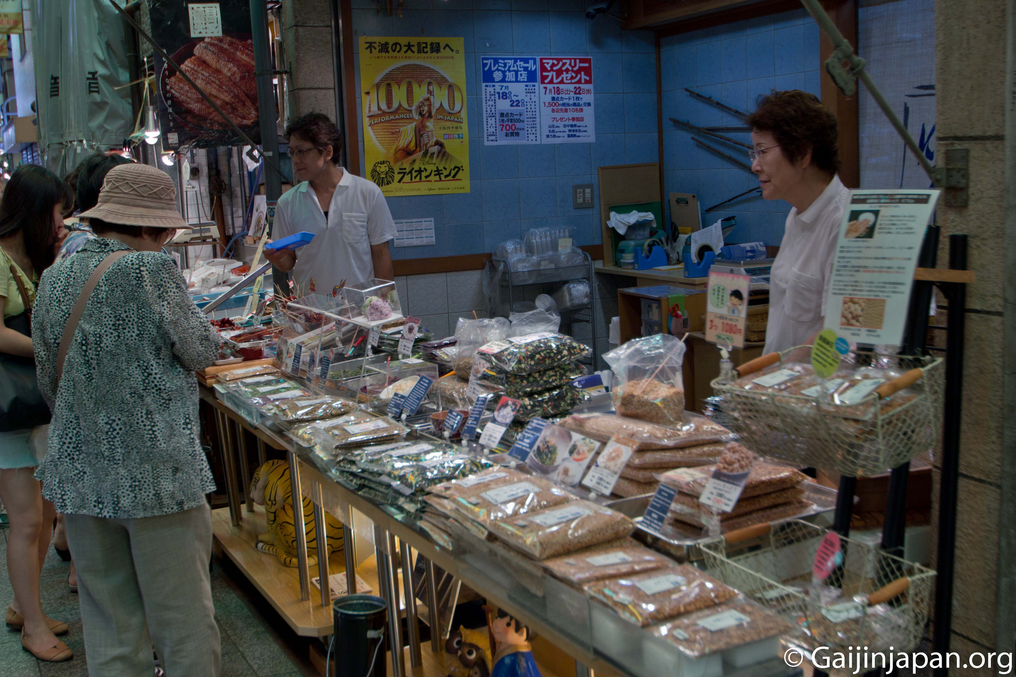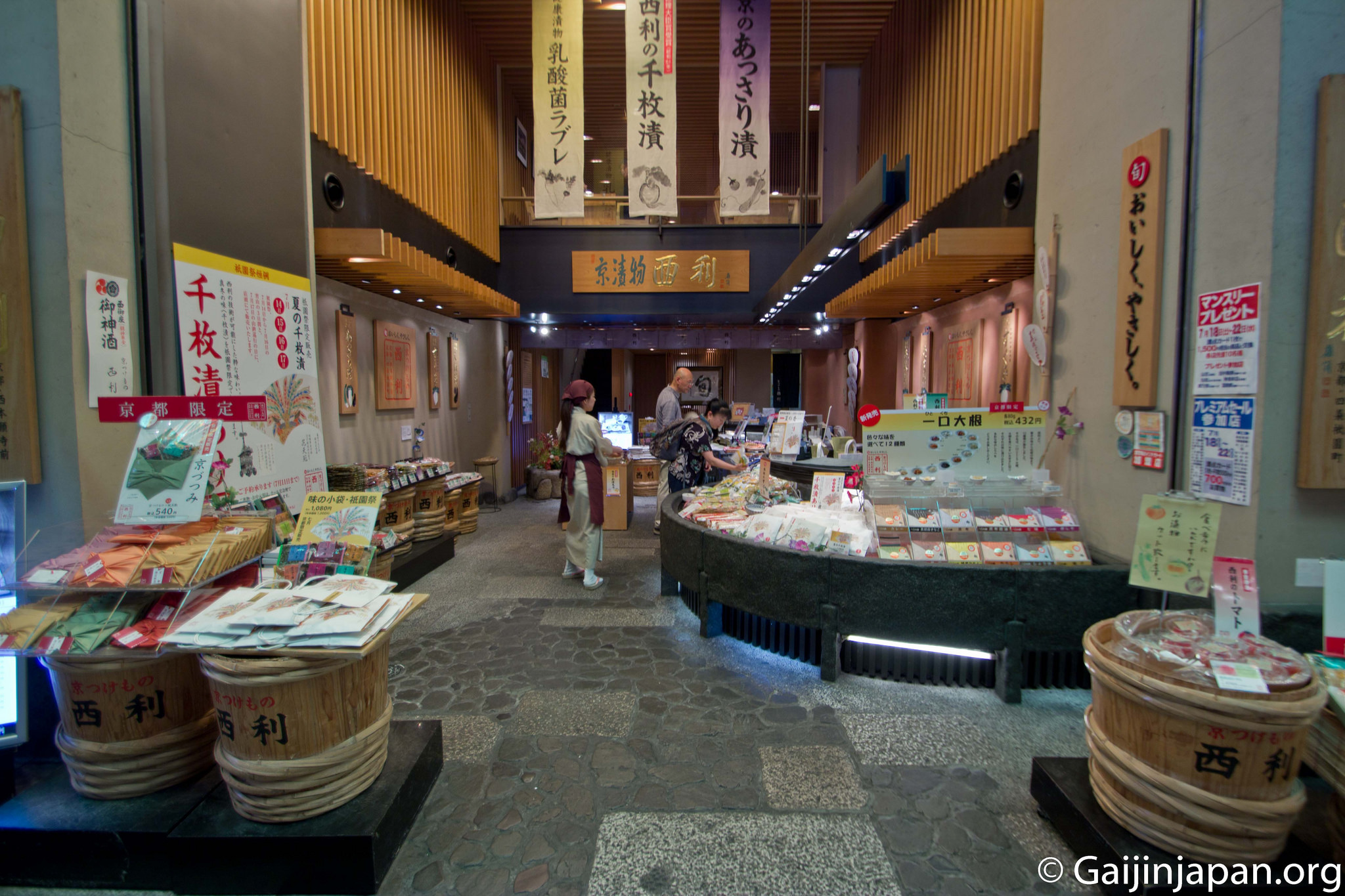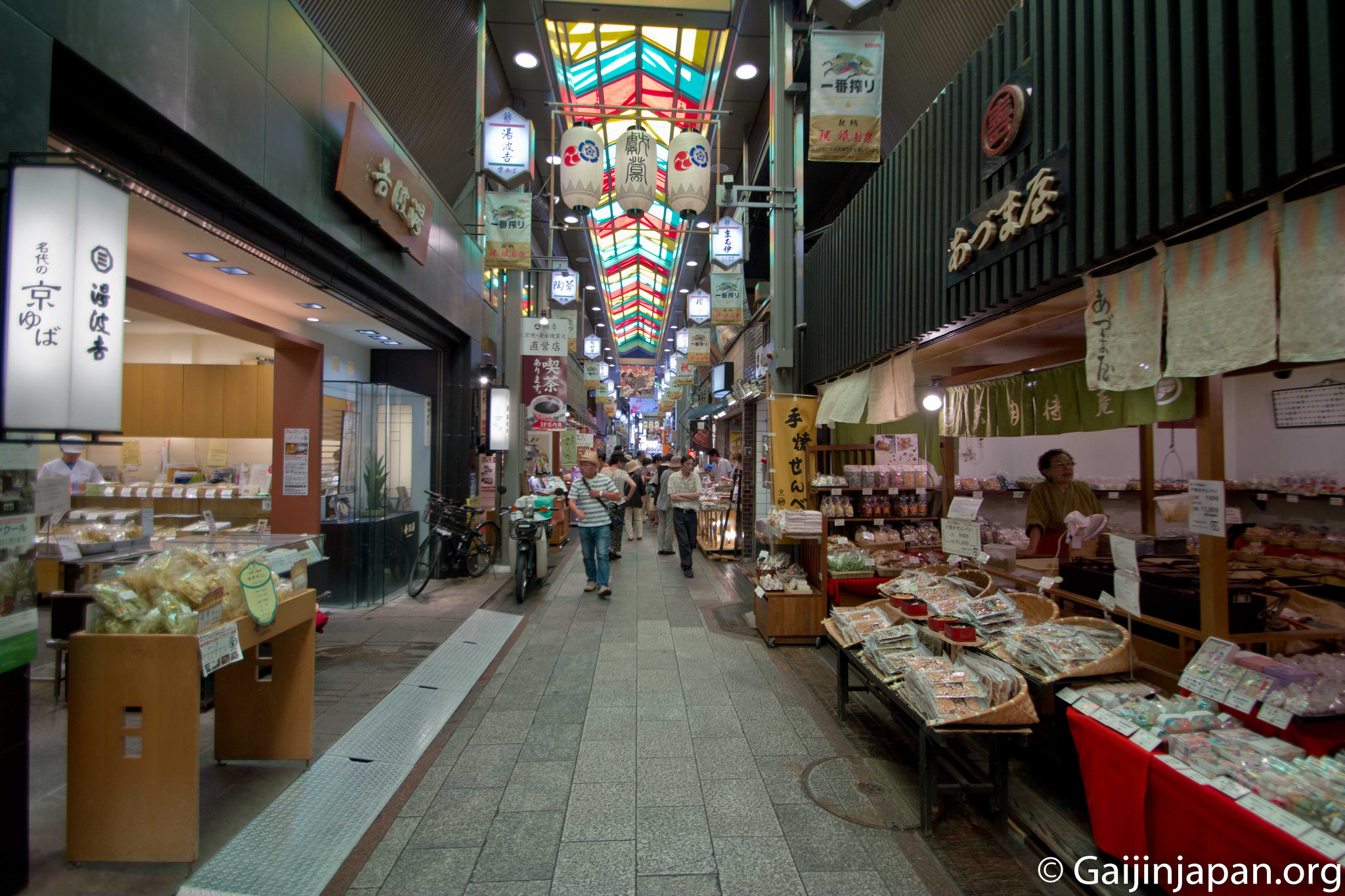 On pourrait classer les magasins en deux catégories: ceux s’adressant aux touristes venus acheter des souvenirs ou autres Omiyage aux couleurs locales, et ceux s’adressant aux chalands quotidiens venus remplir leurs gardes-manger avec des produits frais et de qualité, estampillés « Kyoto ».