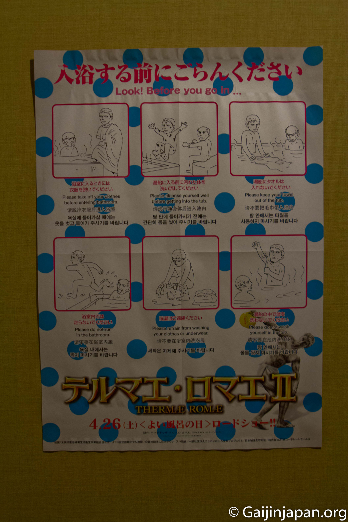 - Ne courrez pas dans l’enceinte du Onsen
