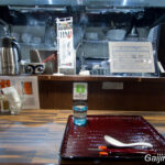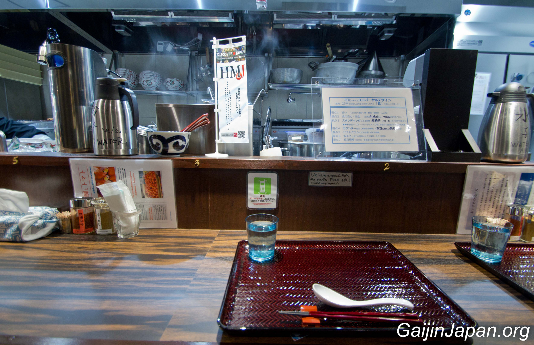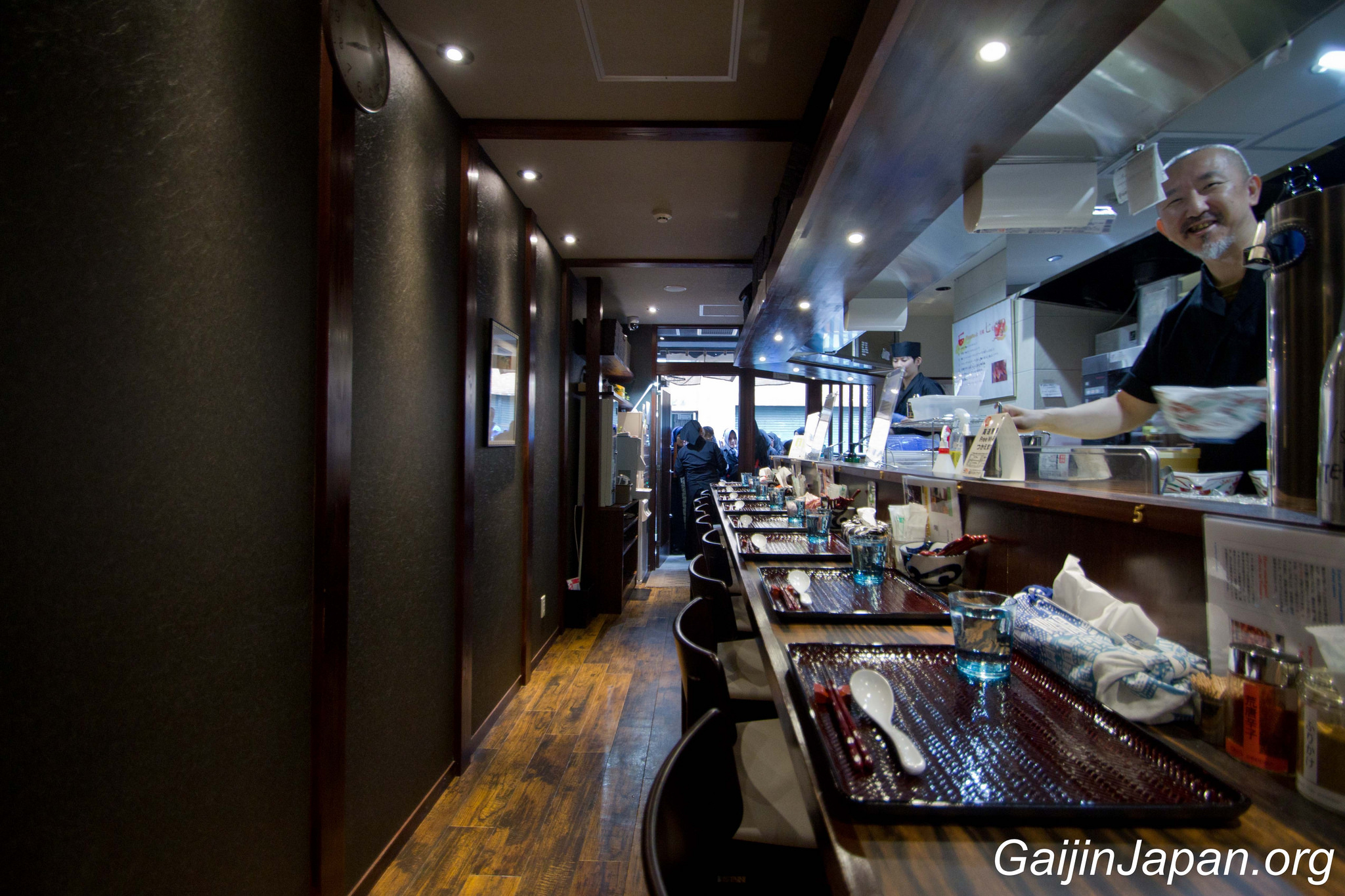 Dans ce restaurant on est loin du petit boui-boui où l’on mange rapidement. On entre dans une atmosphère qui tend vers le luxe avec des couleurs sombres et des éclairages tamisés. On sent que la qualité, du service comme des plats, est la priorité absolue dans ce restaurant qui pourrait nous faire croire que l’on vient d’entrer dans un établissement où notre portefeuille va souffrir. Mais, une fois face à la machine, on se rend compte que pour un millier de Yens on peut consommer de succulents Ramen de tailles impressionnantes.