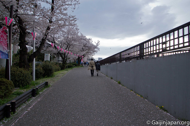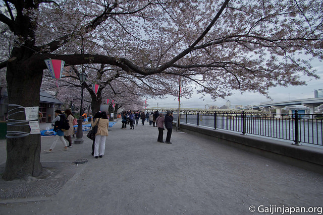 Sa partie centrale se trouve du côté de la grande tour, et juste derrière le building de la bière japonaise Asahi, au niveau du pont Azuma Bashi. Mais il est aussi composé des deux allées en bord de rive sur quelques centaines de mètres et qui, comme la partie centrale du parc Sumida, abritent quelques cerisiers. Ainsi, au début du printemps, il est possible de profiter des cerisiers en fleurs qui sont au nombre de 1000, excusez du peu, et des espaces propices aux Hanami, et les stands qui les accompagnent. Le soir venu, certains cerisiers bénéficieront d’un éclairage pour offrir un spectacle plus coloré aux promeneurs.