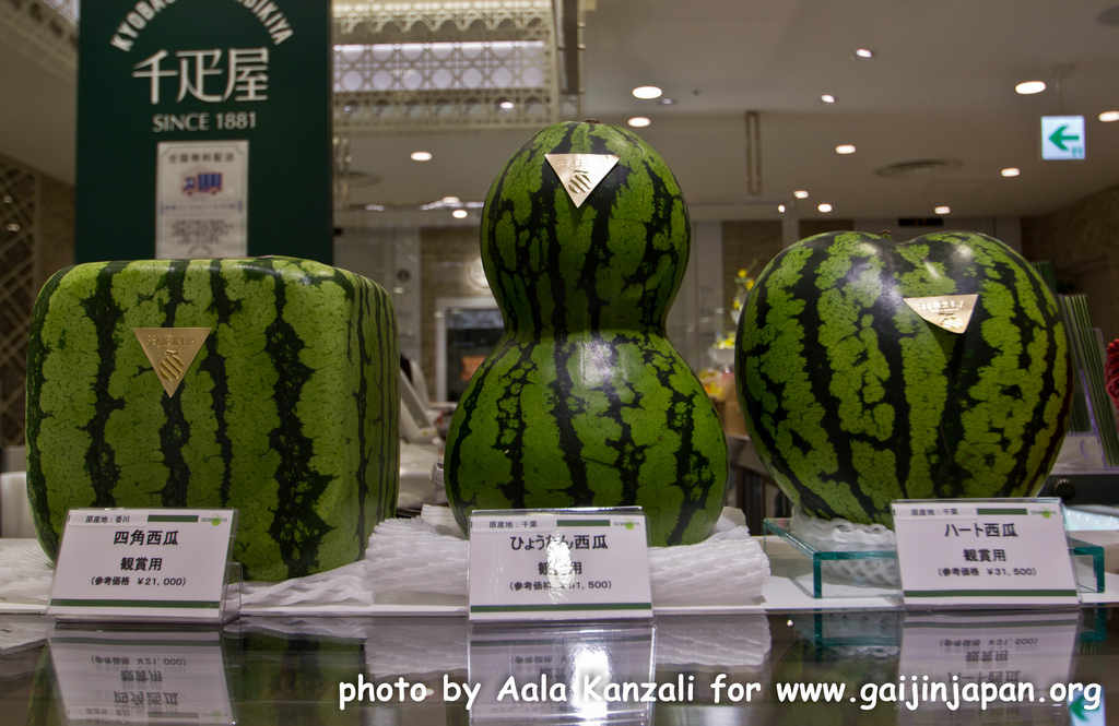 Dans la préfecture d’Aichi, en 2002, des étudiants en agriculture ont même fais pousser des melons carrés. Il y à mêmes des agriculteurs qui proposent des concombres, qui une fois coupés, vous donnent une forme d’étoile ou de cœur.